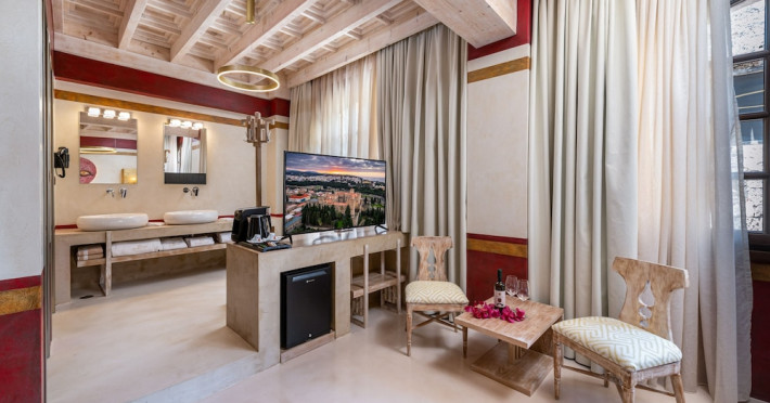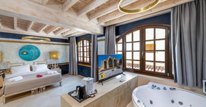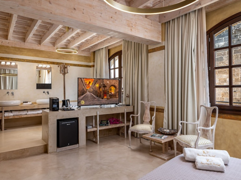 Facilities and services include 24-hour reception, air conditioning, a bar (extra charge), a breakfast room, a café, car parking, concierge facilities, elevators, a garden, gym/fitness facilities, ironing facilities (extra charge), laundry facilities (extra charge), a lounge, multilingual staff, a pool bar (extra charge), a restaurant (extra charge), a safety deposit box, a sauna, spa facilities (extra charge), a swimming pool, wheelchair access, and Wi-Fi access.Room feature Air conditioning, balcony/terrace, Bathrobe, Cable/Satellite TV, Cleaning/Housekeeping, Coffee/tea maker, desk, hairdryer, Mini bar/fridge, Non-smoking rooms, Private bathroom, Room service, Safe box, Shower, Telephone, Toiletries provided. Towels provided and Wi-Fi accessAddress: Ampelas, Paros 84401, Greece