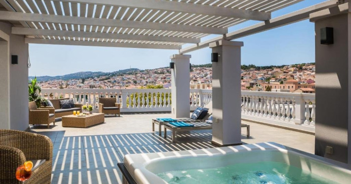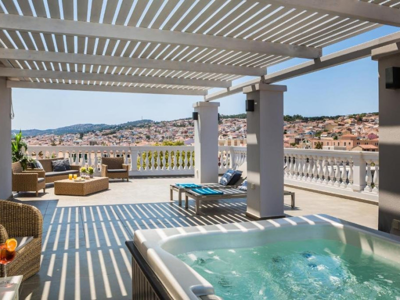 Dotari camere: Camerele de la Aenos sunt decorate intr-un stil modern si sunt dotate cu Smart Samsung TV, perne si saltea Dunlopillo, lumina de citit langa pat si produse de igiena personala Korres in baie. Majoritatea camerelor au un balcon privat cu vedere la piata principala si portul Argostoli.