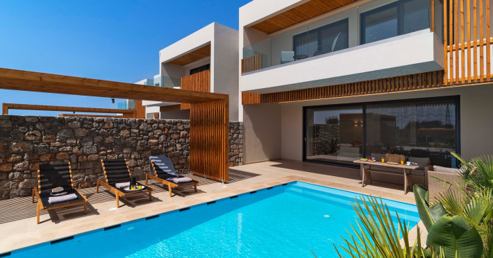 Located in the tranquil village of Gennadi along its picturesque sand and pebble Beach, Aethrion Villas & Suites offers refined elegance and peace. Unwind at our Pool Bar & Restaurant or savour meals in your villa with room service. Come relax, recharge and reconnect as you experience a true island state of mind.