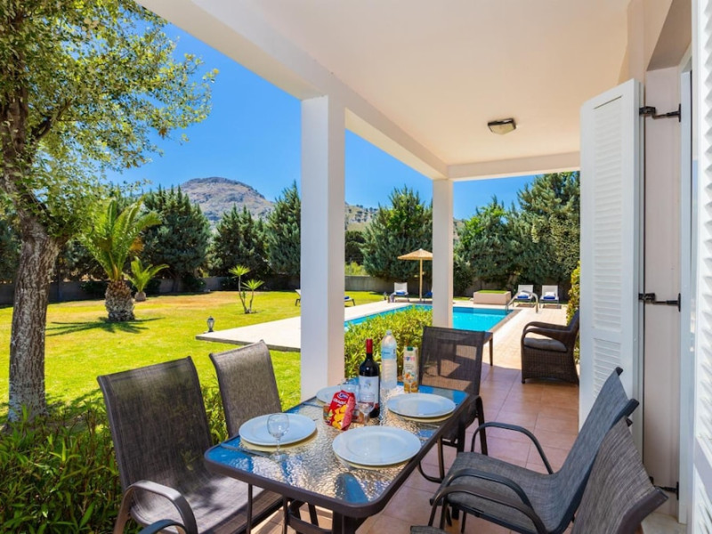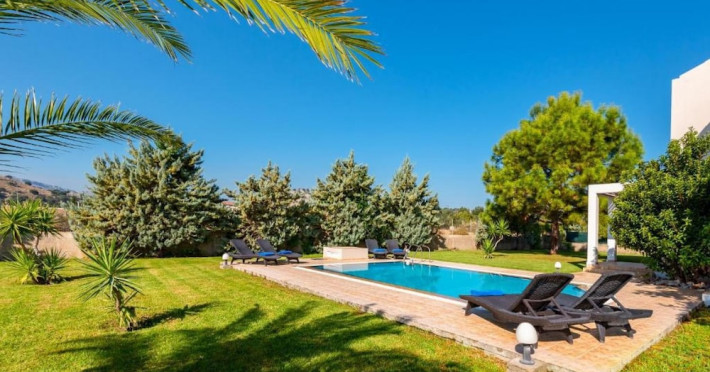 Located in Rhodes, this villa is close to Tsambika Monastery and Seven Springs. This villa is within close proximity of Tsambika Beach and Afandou Beach. Make yourself comfortable in this air-conditioned villa, featuring a kitchen with a full-sized refrigerator/freezer and an oven. There's a private furnished balcony/patio. A flat-screen television with satellite programming provides entertainment, while complimentary wireless Internet access keeps you connected. Conveniences include a separate sitting area and a microwave, and you can also request a crib/infant bed (complimentary). Take advantage of recreation opportunities such as an outdoor pool or take in the view from a terrace and a garden. Additional amenities at this Mediterranean villa include a television in a common area, a picnic area, and barbecue grills. Featured amenities include luggage storage, laundry facilities, and a library. Free self parking is available onsite.