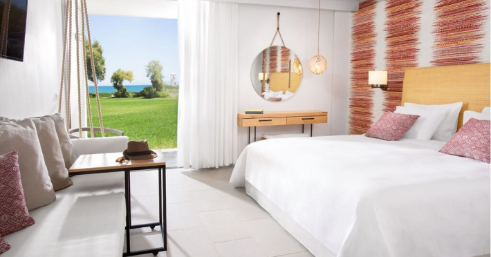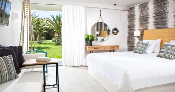 Dotari camere: Complexul dispune de 318 de camere si bungalouri cu un design contemporan, distribuite atat in cladirea principala, pe 5 etaje, cat si in mai multe anexe. Camerele sunt mobilate in culori luminoase de vara si sunt dotate cu uscator de par, prosoape de plaja, aer conditionat, TV satelit, seif, frigider, sticla de apa minerala la sosire, balcon/terasa.