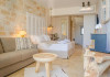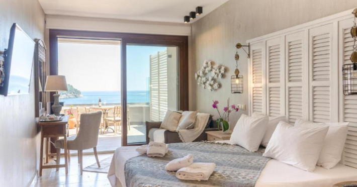 Air conditioning and central heating ensure that rooms maintain comfortable temperatures. Guests can enjoy the sea view from a balcony or terrace. The rooms have a double bed and a sofa bed. Children's beds and extra beds can be requested for younger guests. A safe provides secure storage for guests' personal property. A kitchenette with a refrigerator, a mini fridge and a tea/coffee station is also provided as standard. An ironing set is provided for guests' convenience. A telephone, satellite television and WiFi (no extra charge) are provided as well. Bathrooms are equipped with a shower, a bathtub and a whirlpool bath. For additional convenience, bathrooms also provide a hairdryer. The hotel has family rooms and non-smoking rooms.