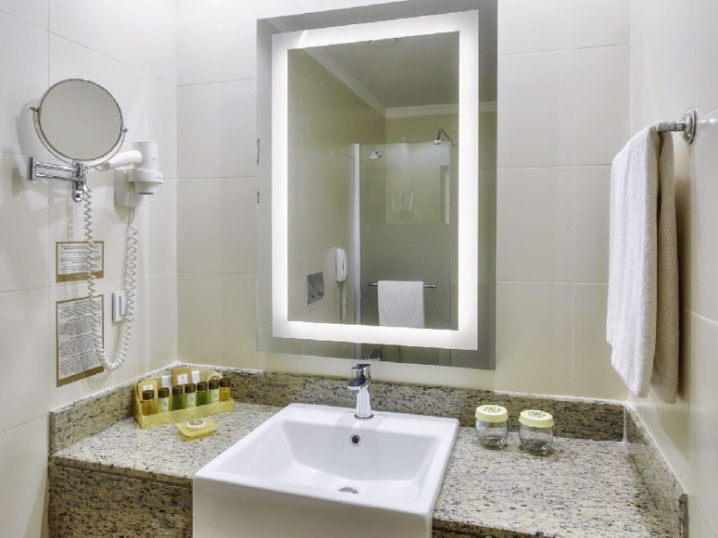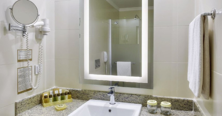 Dotari camere: Camerele hotelului sunt dotate cu: telefon, televizor, minibar (se reumple zilnic cu apa, bauturi racoritoare si bere), seif, aer conditionat centralizat, internet wireless, uscator de par, balcon, parchet, baie cu cada sau cabina de dus.