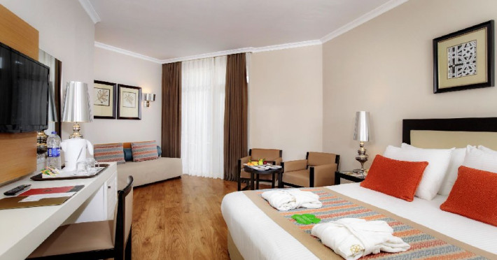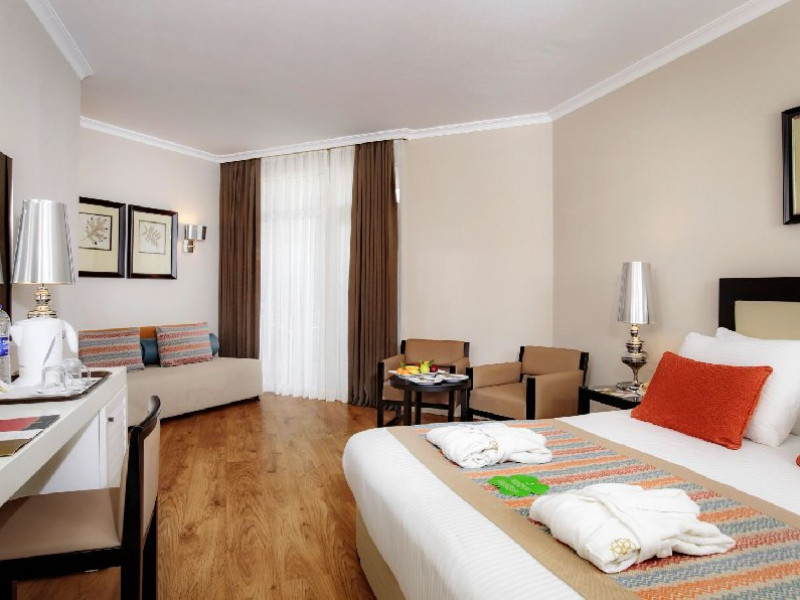 Facilitati generale: Hotelul ofera oaspetilor sai urmatoarele facilitati: restaurant principal, 2 restaurante a la carte, patiserie, baruri, cafenea, discoteca, piscina exterioara (1400 mp), piscina interioara (80 mp, incalzita iarna), piscina exterioara pentru copii (5 mp), 2 tobogane, centru Spa, hammam, jacuzzi, centru fitness, aerobic, volei pe plaja, teren multifunctional (pentru fotbal, basket, volei), teren de tenis, tenis de masa, surfing, pista pentru jogging, animatie, cinema, discoteca, spectacole de muzica live, karaoke, mini club, centru business, parcare, midi club (8-12 ani), cinema, piscina, diverse competitii si activitati, discoteca pentru copii, jocuri in apa, pictura, petreceri pentru sarbatorirea zilelor de nastere.Servicii cu plata: rezervare pentru restaurantele a la carte, bauturile premium, vinurile locale si de import, sampanie, bauturile imbuteliate, bauturile energizante, fresh-uri din fructe, room service, servicii de curatatorie, telefon si fax, servicii medicale, Sudeya Spa, masaj si alte tratamente in centrul SPA, nocturna pentru teren de tenis, sporturi acvatice.