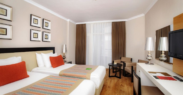 Descriere: Hotelul AKKA ALINDA a fost deschis in anul 1995 si renovat in 2010 (zonele comune), 2011 (camerele din cladirea principala) si 2014 (cladirile anexe). Este construit pe o suprafata totala de 32.000 mp si are in total 401 camere. Hotelul este format din cladirea principala, un corp aditional cu 5 etaje si 2 corpuri aditionale cu cate 3 etaje, legate de cladirea principala prin intermediul unui pasaj.
