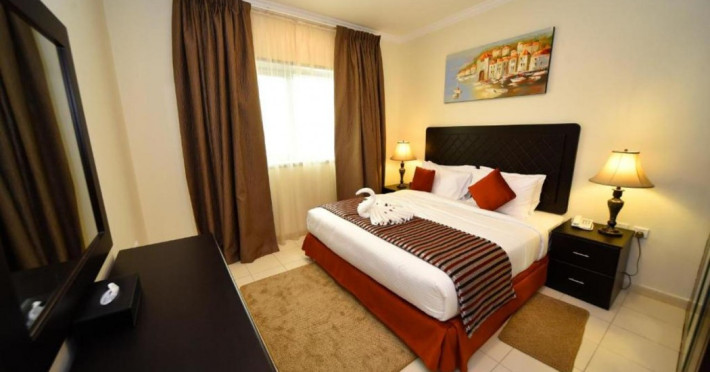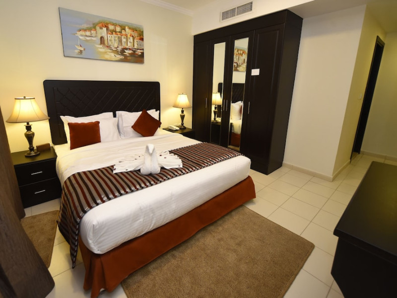 Located in Ajman, Alain Hotel Apartments Ajman offers a range of amenities and services for a comfortable stay. Guests can enjoy complimentary Wi-Fi, 24-hour room service, and daily housekeeping. The hotel features a fitness center, spa with massage services, steam room, and an outdoor pool. Dining options include a restaurant, coffee shop/cafe, and poolside bar, with buffet breakfasts available.