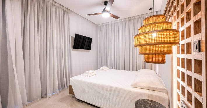 Facilities and services include air conditioning, car parking, concierge facilities, ironing facilities, multilingual staff, pets allowed on request, and a safe.Rooms feature air conditioning, a balcony/terrace, cable/satellite TV, cleaning/housekeeping, a coffee/tea maker, a hairdryer, a kitchenette, a living room, a mini bar/fridge, and non-smoking rooms. Private bathroom, safe box, shower, toiletries provided, towels provided, and Wi-Fi access.Address: Stegna - Archagelos, Rhodes 85102, Greece