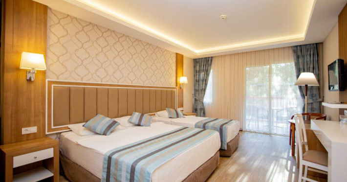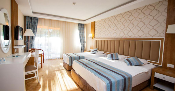Numar camere: 373, garden view (24 mp) , sea view (19-24 mp) , VIP sea front – sharing pool (24 mp) , family (35-39 mp).