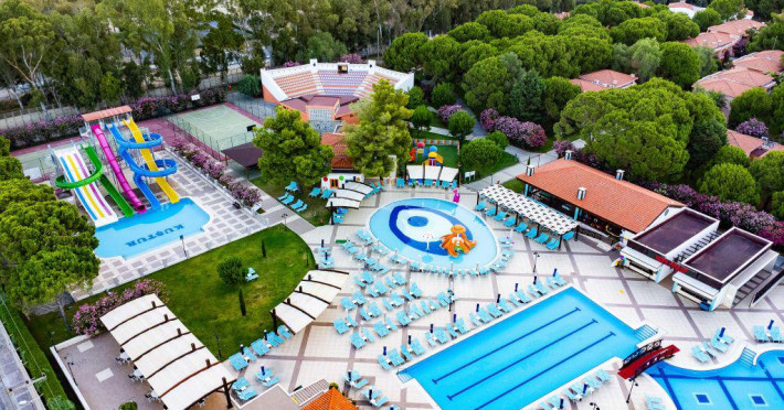Facilitati copii: doua piscine, tobogane acvatice, mini club “Aldy” pentru copii intre 4-12 ani, activitati pentru toate varstele (4-7 ani si 8-12 ani), mini disco, mini bufet in cadrul mini clubului , baby cot (gratuit) .