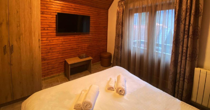 INFORMATII GENERALE Vila Alisio se afla in statiunea Sinaia, la mai putin de 1 km de Castelul Stirbey. FACILITATI UNITATE DE CAZARE Proprietatea dispune de parcare, internet Wi-Fi, gradina, sala pentru servirea micului dejun. Turistii care inchiriaza vila integral au acces la bucataria comuna si la zona de gratar din curte. DESCRIERE CAMERE Camerele duble dispun de pat matrimonial si baie proprie, unele camere avand si balcon. Apartamentul are o singura baie si este format din doua dormitoare, fiecare cu un pat matrimonial. Toate tipurile de camere dispun de aer conditionat, TV. LOCALIZARE Vila Alisio se afla in statiunea Sinaia, la mai putin de 1 km de Castelul Stirbey. ATRACTII TURISTICE Muzeul Peles, Pelisor, Manastirea Sinaia, Muzeul Bucegi, Cazinoul Sinaia, Casa Memoriala George Enescu. SERVICII DE MASA Acces bucatarie comuna si gratar in curte doar pentru turistii care inchiriaza vila integral.