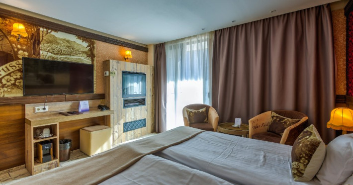 INFORMATII GENERALE Hotel Alpin este situat in centrul statiunii Poiana Brasov la aproximativ 10 minute de mers pe jos de partiile de schi. DESCRIERE UNITATE DE CAZARE Hotelul dispune de parcare, Wi-Fi, restaurante, zona SPA, piscina, sauna, jacuzzi, sala fitness, lounge, loc de joaca pentru copii, Magic Land, sala de conferinte, Ski Academy. FACILITATI UNITATE Centrul SPA Vitarium pune la dispozitia turistilor tratamente corporale, atat pentru doamne cat si pentru domni, peelinguri, impachetari pe Dry-flotation, terapii detox Iyashi Dome- un concept japonez, terapii in cabinetul Snow DRO P unde se afla dusul Vichy, ritualuri complete de la Brandul Babor si Sothys. Masajele de cuplu sau individuale, terapiile speciale, body shape cu Velasmooth, diversele metode de detoxifiere ofera adevarate ritualuri de relaxare si confort. Piscina interioara semi-olimpica situata in cladirea principala a complexului este o piscina generoasa si atent amenajata, fiind completata de piscina pentru copii si piscina exterioara deschisa doar in sezonul de vara. Pe langa acestea, turistii se pot bucura de jacuzzi, sauna umeda si uscata, dus emotional si doua sali de fitness: o sala de forta si una pentru antrenamente cardio. Printre activitatile distractive alte complexului Alpin se numara Alpin Magic Land, unde Zana ii asteapta pe cei mici in fiecare weekend pentru a intra in lumi de basm, Escape Room si Ski Academy care pune la dispozitie instructori de ski snowboard profesionisti (serviciu disponibil doar iarna). Pentru tinerii amatori de jocuri video exista o sala speciala in care se pot juca pe diferite console, impreuna sau individual, o gama variata de jocuri video. Pentru cei dornici de aventura, de curand, pe masivul Postavaru a fost amenajat primul bikeparc din tara. Iar in cadrul resortului se afla un centru de inchirieri de mountain-bike si ghizi turistici care va pot acompania pe trasee speciale. Se pot inchiria si ATV-uri. Pentru cei romantici se poate pune la dispozitie un set de picnic unic, mancare autentic romaneasca si un vin atent selectionat. De asemenea, se poate asigura transportul dus-intors la hotel. Restaurantele complexului Alpin sunt: A Propos - restaurant de tip gourmet, El Bacha - restaurant cu specific libanez, Tosca - restaurant cu specific international, Forest - restaurant cu specific romanesc. DESCRIERE CAMERE Camerele duble standard si deluxe dispun de un pat matrimonial sau doua paturi twin. Junior Suite include un dormitor cu un pat si o zona de relaxare. Uneori, zona de dormit este intr-un dormitor separat de salon sau living. Apartamentul Junior dispune de un salon sau o camera de zi conectata cu unul sau mai multe dormitoare. Apartamentul Executive/Superior este format din doua dormitoare, living, balcon si doua bai separate. Toate camerele dispun de aer conditionata, aparat de cafea, articole de toaleta, baie cu cada sau dus, ceainic sau cafetiera, minibar, halat de baie, papuci de casa, seif, telefon, TV, uscator de par, Wi-Fi. LOCALIZARE Hotel Alpin este situat in centrul statiunii Poiana Brasov la aproximativ 10 minute de mers pe jos de partiile de schi. ATRACTII TURISTICE Castelul Bran, Castelul Peles, Cetatea Rasnov, Biserica Neagra. SERVICII DE MASA Restaurantele complexului Alpin sunt: A Propos - restaurant de tip gourmet, El Bacha - restaurant cu specific libanez, Tosca - restaurant cu specific international, Forest - restaurant cu specific romanesc.POLITICI Nu sunt permise animalele de companie. FACILITATI COPII Piscina pentru copii, loc de joaca, sala de jocuri video, Ski Academy, Magic Land. FACILITATI EVENIMENTE Alpin Conference Center dispune de 41 de spatii ce pot fi amenajate pentru organizarea oricarui tip de eveniment.