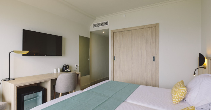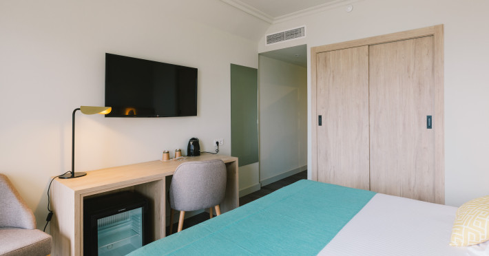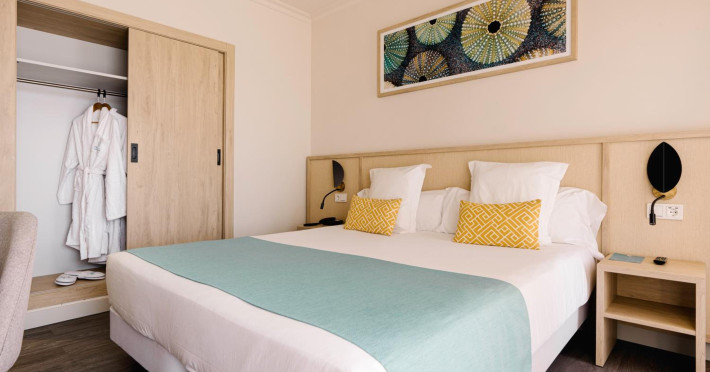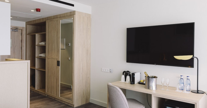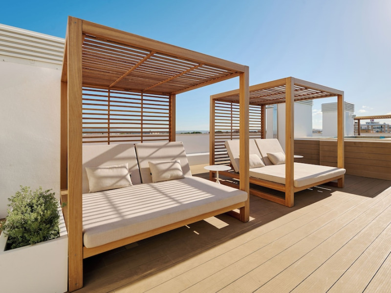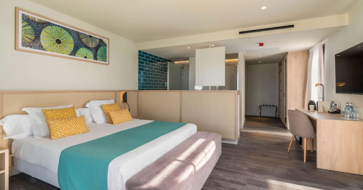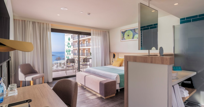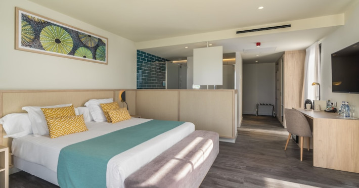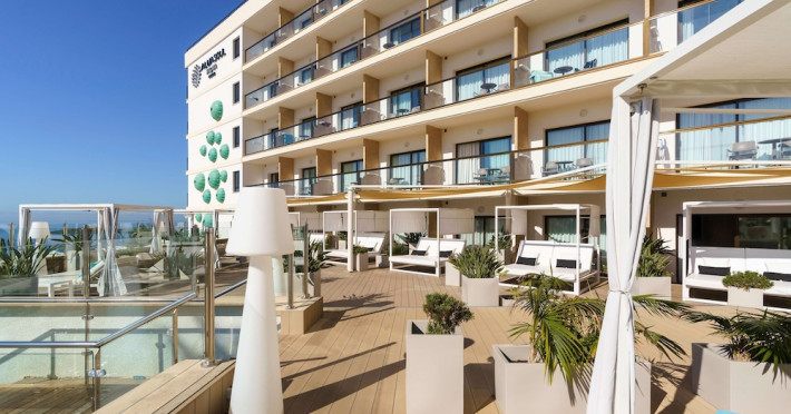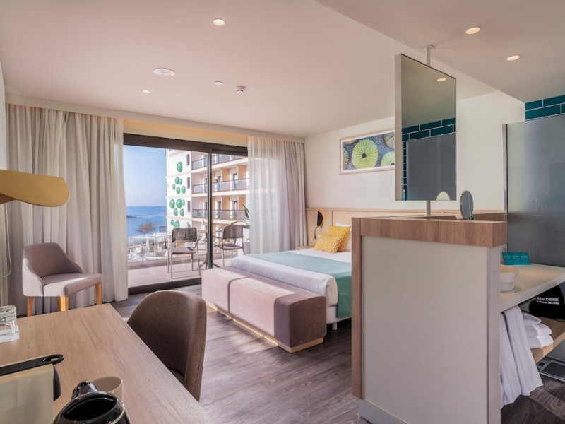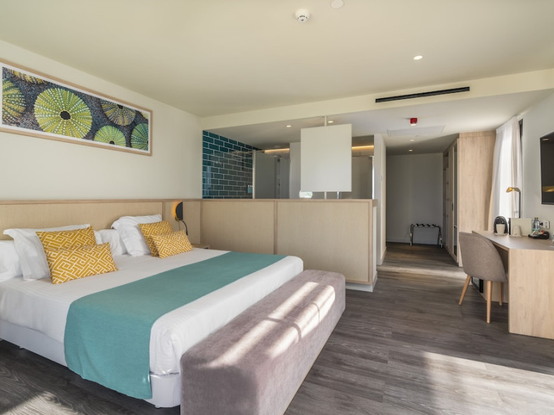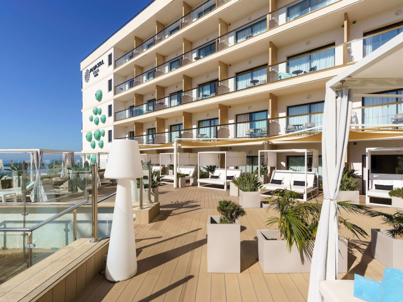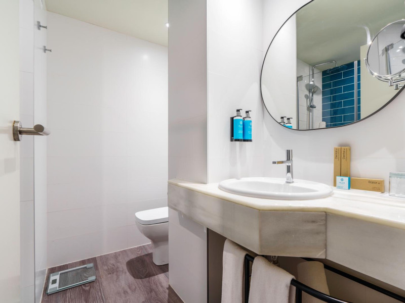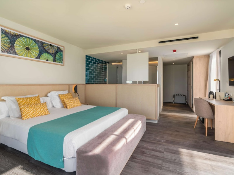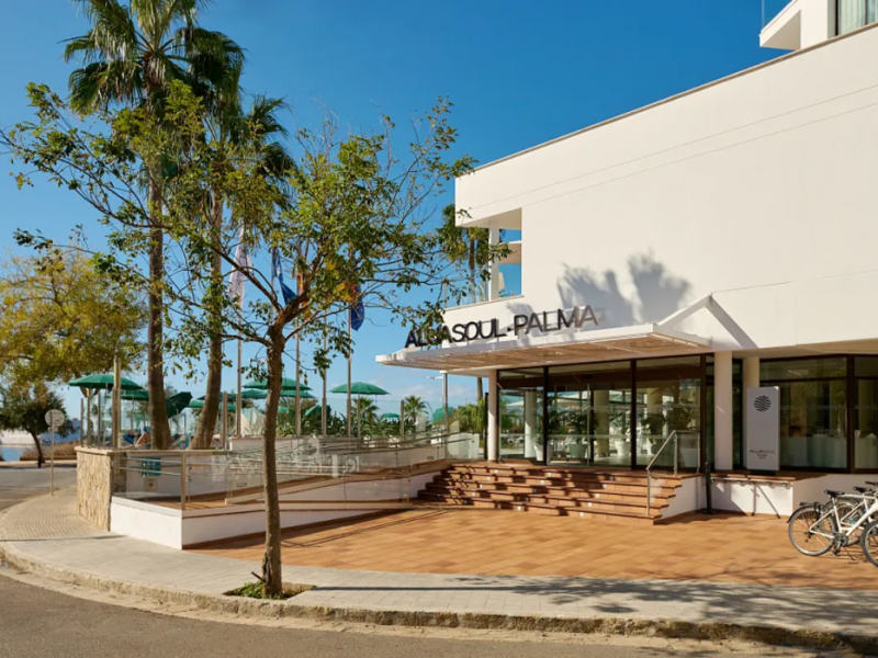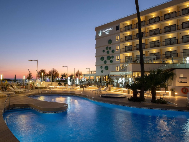 AluaSoul Palma - Adults Only is a modernized hotel (2020) in a historic area of Can Pastilla, Palma de Mallorca, a 3-minute drive from Playa de Palma and 8 minutes from Aqualand El Arenal. It's located less than 2 km from Palma de Mallorca Airport (PMI) and approximately 8 km from Palma city centre. The hotel offers 138 non-smoking rooms, each with a private balcony, air conditioning, adjustable central heating, a flat-screen TV with satellite channels, free Wi-Fi, a safe, and a telephone. Bathrooms include a hairdryer, vanity mirror, and complimentary toiletries. Some rooms offer a minibar (fee applies) and wheelchair-accessible rooms are available. Amenities include a seasonal outdoor pool (closed November 1st to April 15th), a sun terrace, a health club, a sauna, a restaurant (Terra) serving international cuisine with ocean views and alfresco dining, a poolside bar, two bars/lounges, and a coffee shop/cafe offering snacks. Additional services include a 24-hour front desk, multilingual staff, concierge services, a tour desk, laundry service, dry cleaning, bicycle rental (fee applies), car rental service, a conference room (70 sq m), and a banquet hall. Buffet breakfast is available daily (fee applies). Free Wi-Fi is available throughout the hotel. Nearby attractions include Cala Estancia, San Antonio de la Playa Marina, Platja d'Or, Platja de Can Pastilla, and Playa de Palma. Free parking is available nearby, and public buses stop nearby. Reservations of more than 5 rooms may be subject to supplements and special conditions. My Favorite Club® offers exclusive services including upgraded rooms, enhanced amenities, and access to a rooftop bar. The AluaSoul Palma Hotel - Adults only is a Tourist hotel. The nightlife/restaurants are easily accessible by taxi or bus from the hotel.