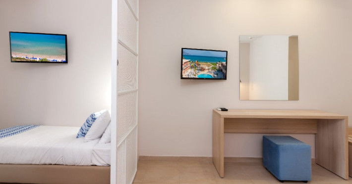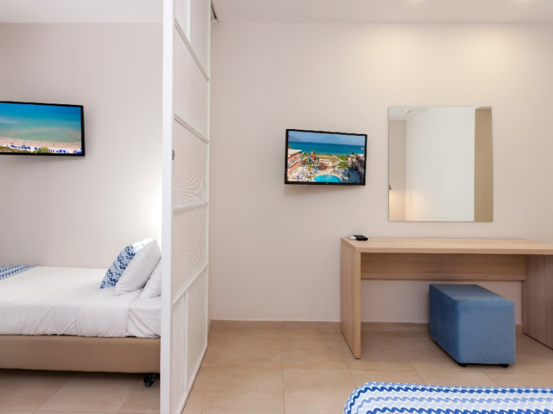 Dotari camere:Hotelul dispune de camere dotate cu balcon sau terasa, seif, aer conditionat (inclus in pret), telefon, baie cu dus sau cada, uscator de par, fierbator pentru preparare ceai sau cafea, minifrigider, TV, wifi gratuit. Curatenia in camere se face de 6 ori pe saptamana, lenjeriile de pat si prosoapele de baie sunt schimbate de 2 ori pe saptamana.