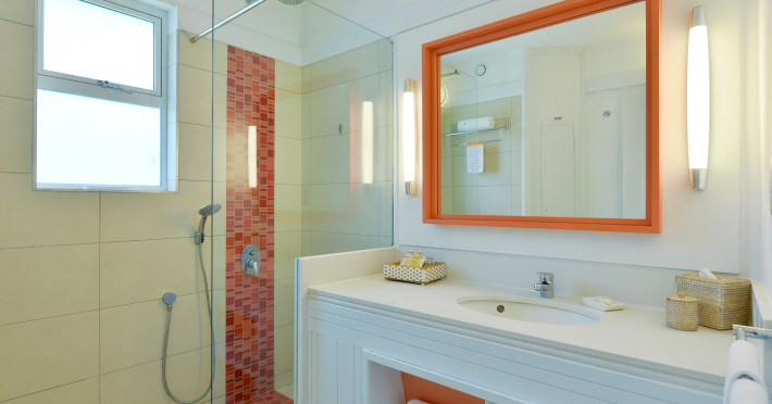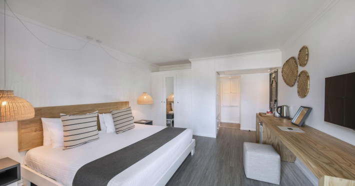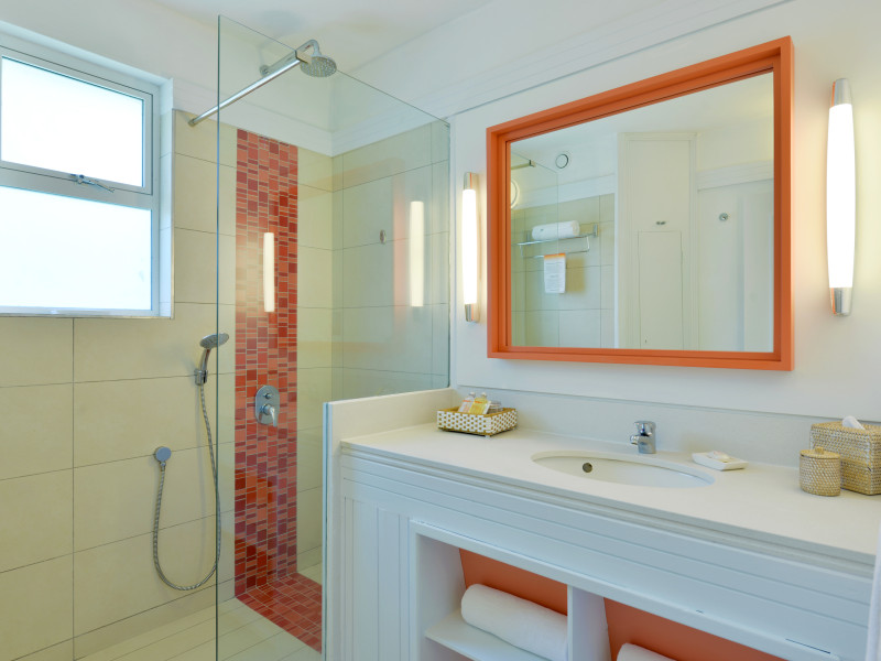 Ambre Mauritius is a four-star, adults-only (16+) resort located on the east coast of Mauritius in Palmar, facing a 700-meter white sandy beach on a sheltered bay. The resort features 297 modern guestrooms with air conditioning, flat-screen TVs, complimentary Wi-Fi, and private bathrooms with rainfall showerheads and complimentary toiletries. Guests can enjoy international cuisine at 3 restaurants and relax at 2 bars, including a beach bar and poolside bar. A complimentary buffet breakfast is served daily.
