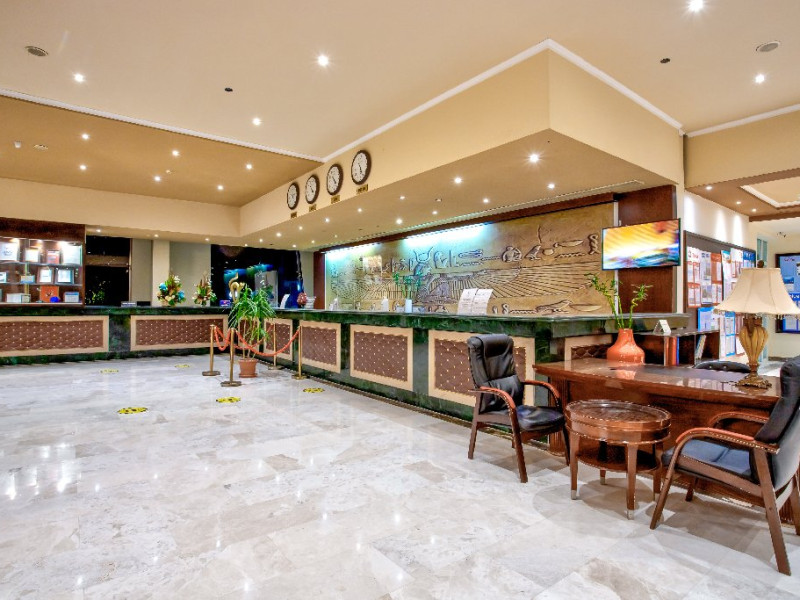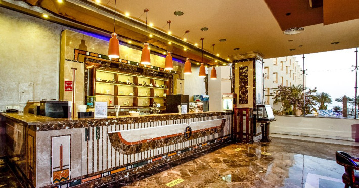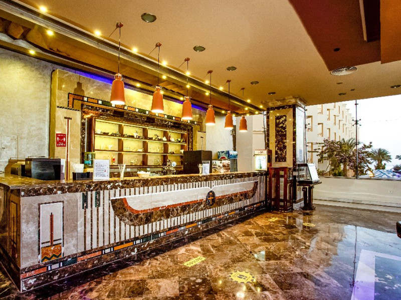 Hotel Receptie disponibila pentru oaspeti. Piscina dreptunghiulara (suprafata cca. 1000 mp; incalzita iarna). Piscina pentru copii, tobogane pentru copii si adulti. Sezlonguri, umbrele si prosoape gratuite la piscina. Restaurant principal Blue Lagoon. 4 restaurante a la carte (italian, egiptean etc.). Bary: Lobby Bar Sphinx, Pool Bar Diaquiri, Bar Shots, Disco Bar Crescendo. Alte facilitati: schimb valutar (bancomat), Wi-Fi, pasaj comercial, magazin de suveniruri (contra cost), spalatorie. Wi-Fi gratuit in lobby; contra cost in restul hotelului (in lobby doar pentru mesaje, nu pentru navigare).