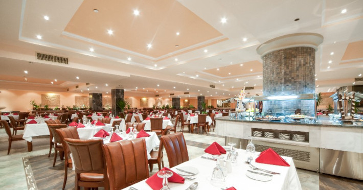 Mese All Inclusive: Mic dejun: 07:00 10:00 (restaurant Blue Lagoon bufet). Pranz: 13:00 15:00 (restaurant Blue Lagoon bufet). Cina: 19:00 22:00 (restaurant Blue Lagoon bufet). Gustari la Beach Bar: 15:00 17:00. Restaurant principal Blue Lagoon bufet. Restaurant italian (1x pe sejur, cu rezervare). Sushi Bar (contra cost). Pool Bar: bauturi alcoolice locale si racoritoare 10:00 17:00. Beach Bar: bauturi alcoolice locale si racoritoare 10:00 17:00. Lobby Bar Sphinx: deschis nonstop (intre 00:00 10:00 doar bauturi nealcoolice). Bauturi nealcoolice: Fanta, Sprite, Cola, apa minerala, ceai, cafea. Bauturi alcoolice locale: rom, whisky, vodca, gin, brandy, bere, vin alb si rosu.