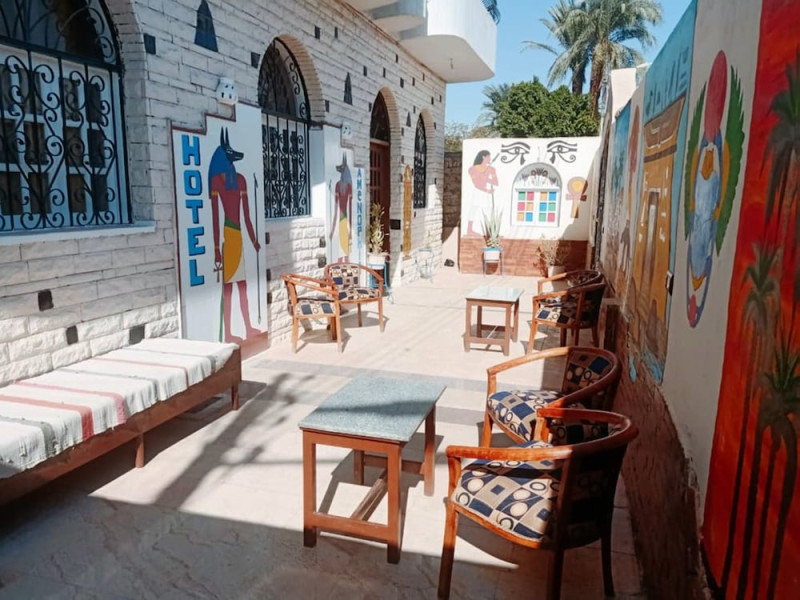 Located in Luxor, near Medinet Habu Temple, Amenophis Hotel offers accommodation with a garden, terrace, and restaurant. It features a bar, complimentary wireless internet access, and a 24-hour front desk. Guests can enjoy a complimentary continental breakfast daily from 7 AM to 11 AM, and take advantage of room service during limited hours. The hotel provides free private parking, airport transfers, a shared kitchen, dry cleaning/laundry services, and luggage storage. The air-conditioned rooms include a private bathroom with complimentary toiletries and a bidet, a desk, a balcony with mountain views, and a minibar. Housekeeping is provided daily, and complimentary bottled water is available. Several attractions are nearby, including the Colossi of Memnon and Deir el-Medina. Luxor International Airport is 28 km away. The Amenophis Hotel is a hotel.