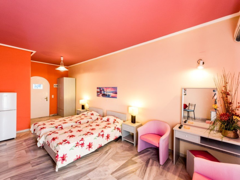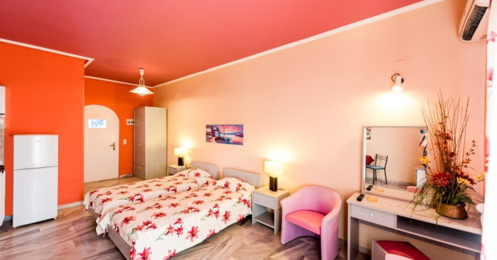 Dotari camera: o veranda mare sau balcon, un mic colt de bucatarie cu frigider si fierbator electric, aer conditionat, TV, uscator de par si Wi-Fi gratuit. Paturile suplimentare sunt disponibile cu un cost suplimentar.