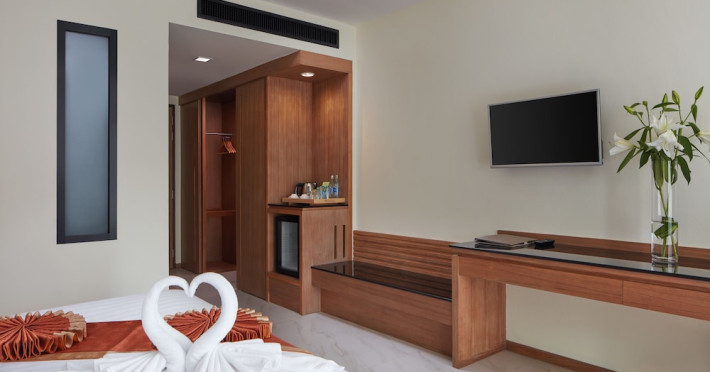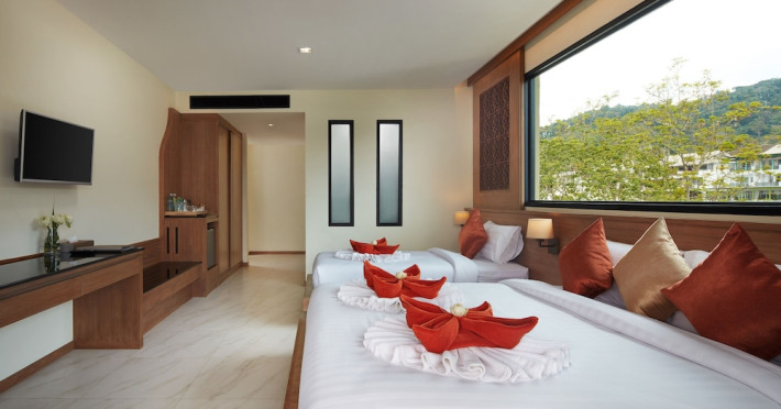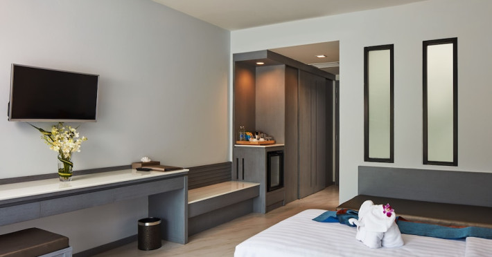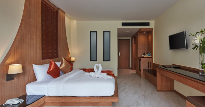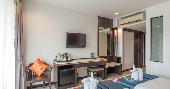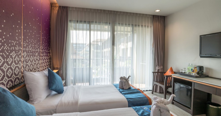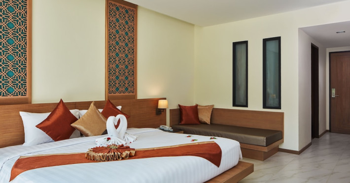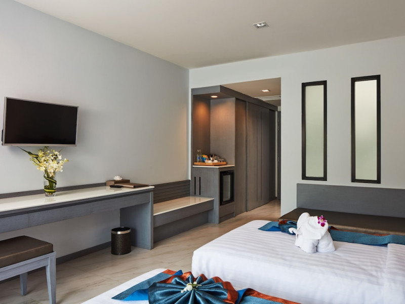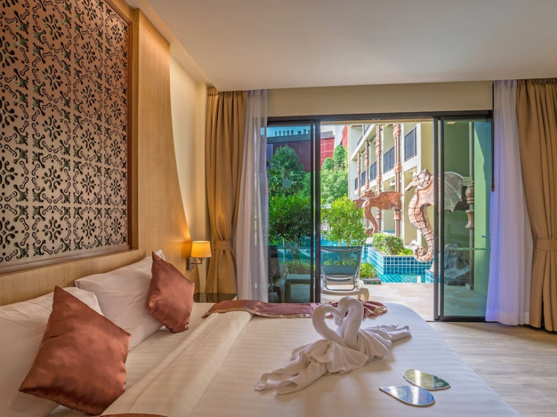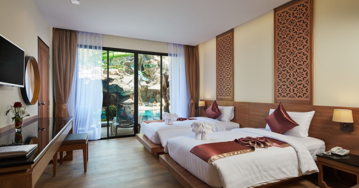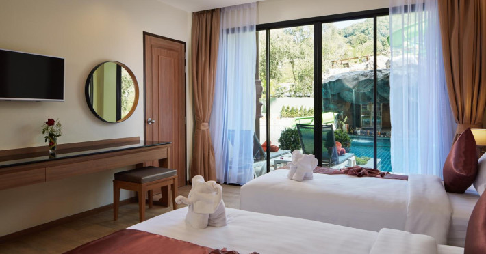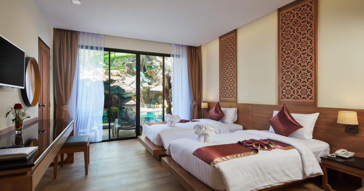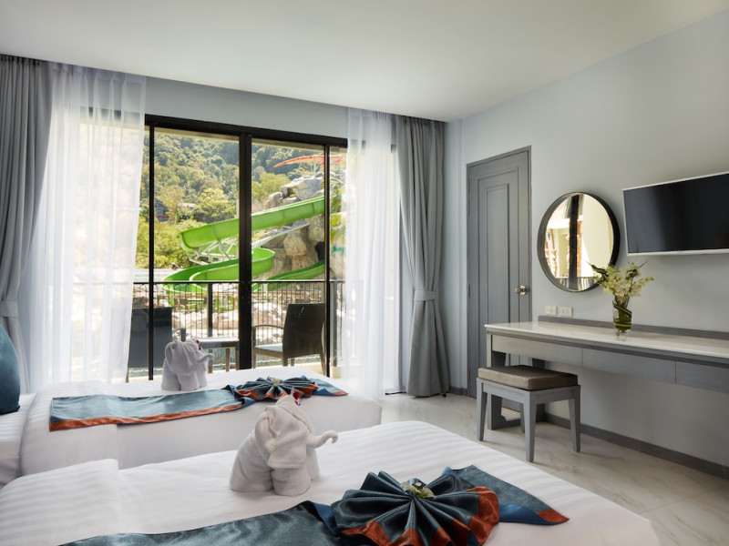Located on Ao Nang Beach in Krabi, near Nopparat Thara Beach, this resort offers a tranquil escape with modern Thai decor. It features two outdoor swimming pools: one for relaxation and another with a water park including two slides, artificial mountains, and waterfalls. Guests can enjoy on-site dining at the restaurant, coffee shop/cafe, bar/lounge, and poolside bars. Breakfast is available for a fee.