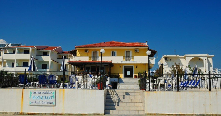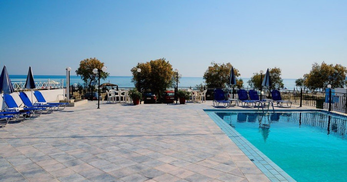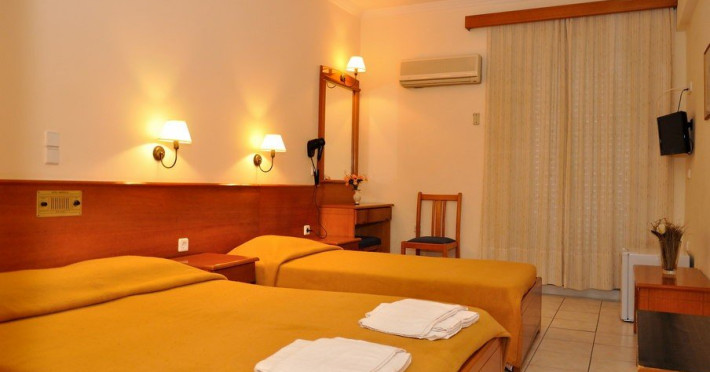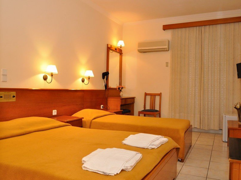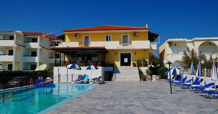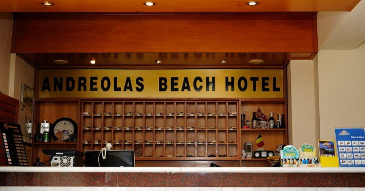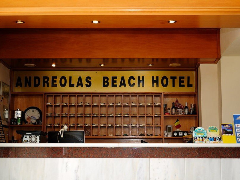 Descriere: Hotelul Andreolos Beach ofera cazare pentru un buget redus in cele 40 de camere, fiind localizat chiar pe plaja din Laganas. Tip masa: mic dejun Localizare: Hotelul Andreolos Beach este situate in Golful Laganas la aproximativ 3 km de aeroport. Plaja: publica, intinsa cu nisip si pietricele. Facilitati generale: receptie 24 h, lobby, salon cu terasa, lift, seif la receptie (contra cost), facilitati pentru utilizarea internetului (contra cost), restaurant, bar, WIFI in spatiile publice (gratuit), zona TV, piscina exterioara (08.00-21.00), dus, terasa, sezlonguri si umbretule (gratuite la piscina, contra cost pe plaja), gradina, parcare, schimb valutar, servicii medicale (contra cost). Dotari camera: Toate cele 40 de camere sunt dotate cu aer conditionat (contra cost), telefon (contra cost), Wifi (gratuit), TV satelit, frigider, cada sau dus, toaleta, uscator de par, balcon sau terasa. Camerele au o suprafata de aproximativ 16 mp, sunt curatate zilnic, prosoapele si lejeria se schimba de 2 ori pe saptamna. Servicii cu plata: telefon, spalatorie, room service, sezlongurile si umbrelutele pe plaja. Pagina web: https://www.andreolashotel.gr/
