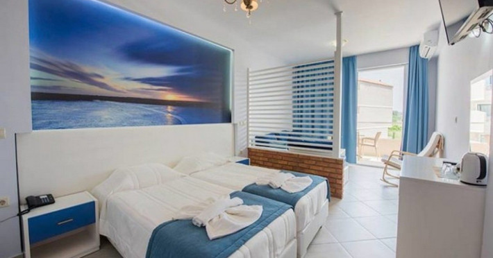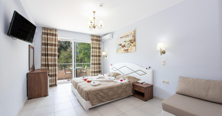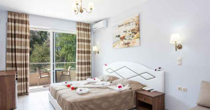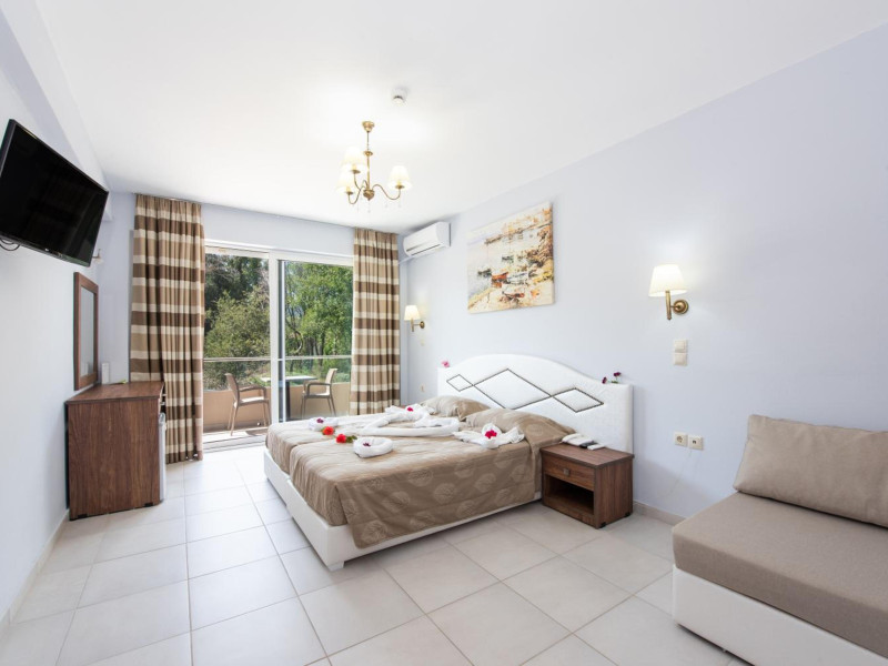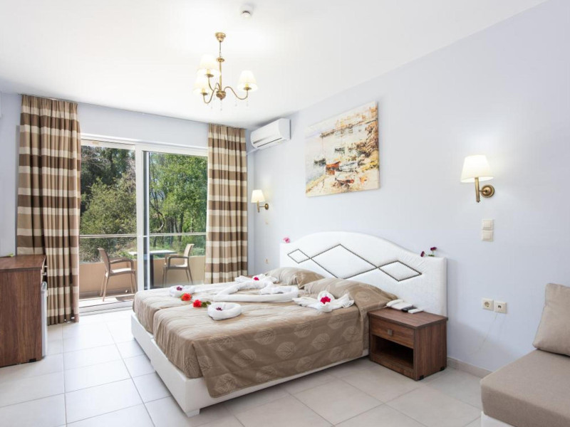 Located in Roda, less than 1 km from Roda Beach, Angela Beach Hotel & Apts offers accommodation with a seasonal outdoor swimming pool, a garden, a terrace, a restaurant, and a bar. This 3-star hotel features air-conditioned rooms, each with a balcony offering garden views and a private bathroom. Rooms are equipped with a flat-screen TV and free toiletries. Buffet and continental breakfast options are available. Guests can enjoy table tennis and a children's playground. The 24-hour front desk staff speaks German, Greek, and English. Angelokastro is 24 km away, and Port of Corfu is 34 km from the property. Corfu International Airport is 35 km away. The ANGELA BEACH is a hotel.