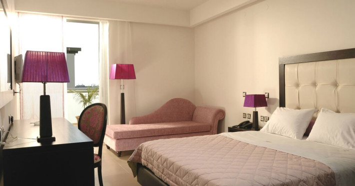 Descriere: Angela Suites Boutique Hotel este un hotel situat in centrul statiunii Sissi care le ofera turistilor unitati de cazare de 5* decorate in culori vii si mobilier modern.