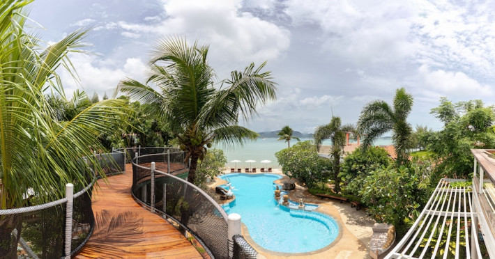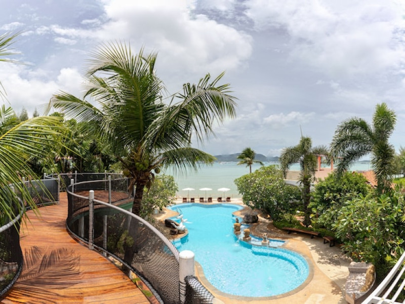 Located on Chalong Bay in Phuket, Thailand, the 4-star Aochalong Villa Resort & Spa offers a relaxing escape with modern amenities. The resort features Asian-inspired rooms with balconies and views of the garden, pool, or sea. Guests can enjoy an infinity pool overlooking the sea, traditional Thai massage services, and complimentary Wi-Fi. Rooms are equipped with air conditioning, refrigerators, and satellite programming. The private bathrooms have showers, complimentary toiletries, and hair dryers. Dining options include a beachfront restaurant serving seafood, Thai, and Western dishes, as well as 24-hour room service. A bar/lounge is also available. The hotel offers a complimentary beach shuttle, tour/ticket assistance, dry cleaning/laundry services, a 24-hour front desk, and luggage storage. Airport shuttle service is available for a surcharge. The hotel is a short drive from Chalong Pier and Phuket Town.