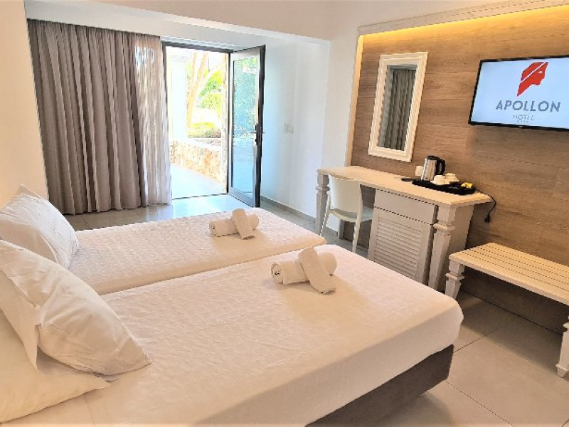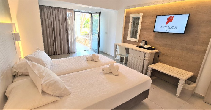 Descriere: Hotelul Apollon este un hotel de 4 stele, situat ideal foarte aproape de centrul orasului Kos, in zona Lambi si ofera facilitati care fac vacanta mai placuta. Camerele sunt confortabile, spatioase, pastrate in stare perfecta si fiecare este bine echipata. Localizare: Hotelul se afla la 150 m de plaja Lambi, la 1800m de orasul Kos si la 24km de aeroport. Dotari camere: baie cu cada, TV satelit, telefon, uscator de par, vedere la gradina sau piscina, A/C, balcon sau terasa, mini frigider, seif (contra cost) Facilitati hotel: receptie 24h, lobby cu bar, inchiriere masini sau motociclete, internet wi-fi gratuit in lobby, loc de joaca, parcare privata, piscina, piscina pentru copii, bar la piscina, sezlonguri si umbrele gratuite, restaurant, teren de tenis, teren de baschet Website: www.apollonhotelkos.gr