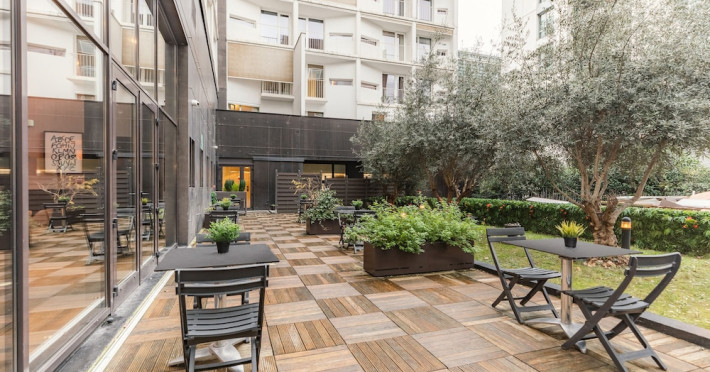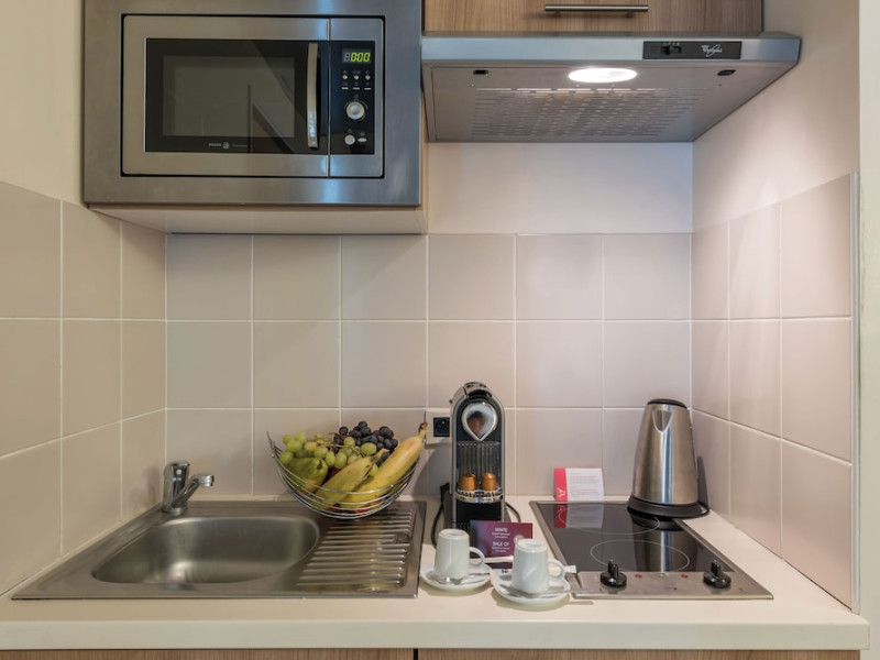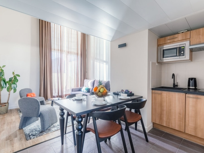 The aparthotel provides a 24-hour reception, luggage storage, and laundry/dry cleaning services (for a fee). Guests can relax on the terrace or in the garden. A breakfast buffet is available for a fee, featuring a variety of pastries, cold meats, hot dishes, fresh fruit, and organic options.