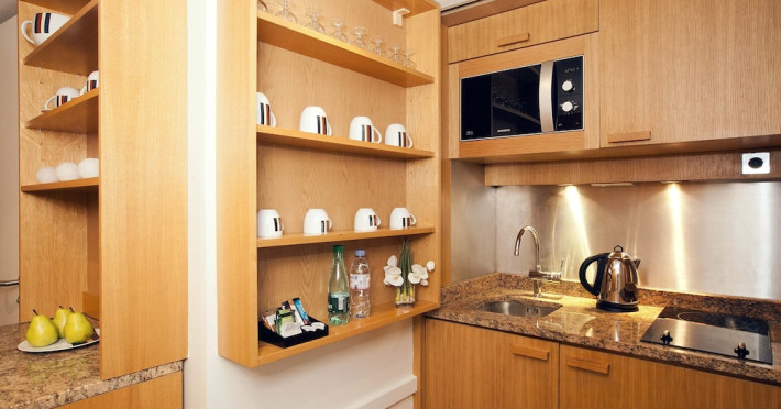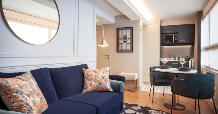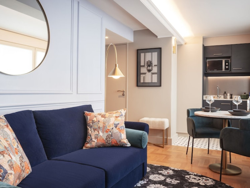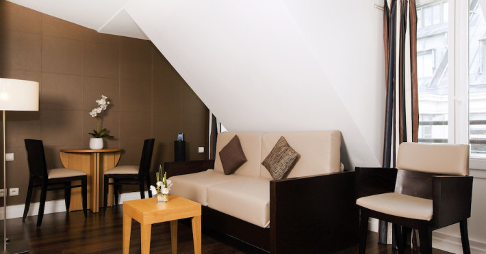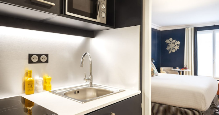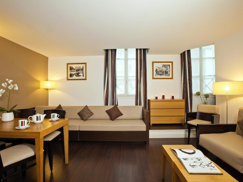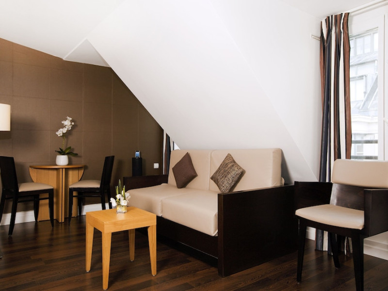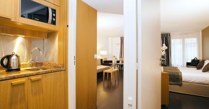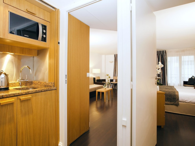 Residhome Paris Opéra, an elegant 18th-century style residence, is ideally located in the heart of Paris, a 2-minute drive from Palais Garnier and 5 minutes from the Champs-Élysées. It's within easy walking distance of major attractions including the Galeries Lafayette, Printemps Department Store, Boulevard Haussmann, Théâtre Mogador, Grands Boulevards, and Place de la Madeleine. The property offers 90 guestrooms, each featuring a kitchenette with refrigerator and stovetop, a 42-inch LCD TV with satellite programming, complimentary wireless internet access, a safe, and a separate sitting area. Daily housekeeping is provided. Amenities include a business center, limo/town car service, dry cleaning/laundry services, concierge services, and babysitting (surcharge). Buffet breakfast is available daily (fee applies). Saint-Lazare Metro Station is 400 meters away. Bakeries and supermarkets are within 200 meters. The nearest airports are Paris Orly (ORY) and Paris Charles de Gaulle (CDG). The Apparthotel Residhome Paris Opera is a City apartment, City hotel, Family Style, Modern, Tourist hotel. The nightlife/restaurants are within walking distance from the hotel.