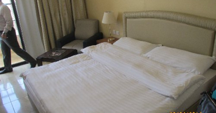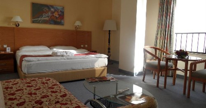 Informatii generale: situat chiar langa hotelul Movenpick, Aqaba Gulf este un hotel standard aflat in centrul orasului dar dispune de piscina si a fost renovat recent. Localizare: hotelul Gulf, cu vedere la Golful Aqaba, este situat la 5 minute de mers pe jos de centrele comerciale i restaurantele din centrul orasului Aqaba Dotari camere: 207 camere spatioase si elegante echipate cu TV cu ecran plat, minibar, seif gratuit, aer conditionat, facilitati pentru preparerea de ceai si cafea, baie cu uscator de par. Camerele standard nu au balcon iar camerele superior au balcon. Facilitati hotel: o psicina exterioara inconjurata de sezlonguri, restaurant principal ce ofera buffet international, restaurant a la carte, cafenea-bar, o mica gradina, teren de tenis, terasa, inchiriere de masini si biciclete, parcare gratuita. Plaja: Hotelul nu dispune de plaja privata dar hotelul asigura transport si intrare la plaja privata Berenice Beach Club (10 usd/persoana/zi incuzand intrarea la plaja, sezlonguri, prosoape, piscine, transfer dus-intors). Tot aici se pot face diverse sporturi pe apa (conta-cost), scufundari, plimbari cu vaporasul. Tip masa: demipensiune Pagina web: http://www.aqabagulf.com/