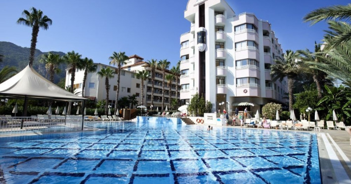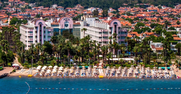 Descriere: Acest Hotel spectaculos de 5* este situat pe coasta de sud-vest a Turciei, unde se intalnesc Marea Egee cu Mediterana. Hotelul Aqua este situat la doar 7 km de centrul orasului Marmaris si la 137 km de Aeroportul Milas din Bodrum. Cu o pozitie de invidiat pe malul marii, hotelul este in apropierea tuturor atractiilor pe care Icmeler le ofera cu generozitate: magazine, viata de noapte, restaurante si baruri, obiective turistice. Camerele confortabile, preparatele culinare rafinate, un centru SPA si wellness renumit, combinate cu vederi spectaculoase si servicii de neegalat, va garanteaza un sejur perfect si amintiri de neuitat. Pagina web: http://www.hotelaqua.com