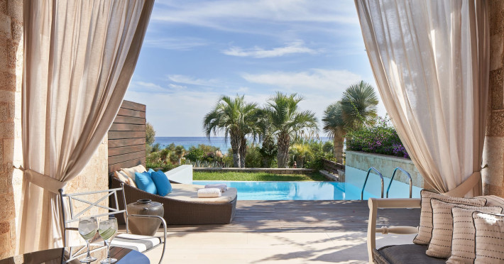 A luxury resort in Rhodes echoes authentic mediterranean living.The Aquagrand Artistic Luxury Beach Resort is a beachfront sanctuary located in Lindos, where romance and relaxation intertwine effortlessly. With its lush landscapes and panoramic vistas of Navarone Bay, our adults-only resort in Rhodes beckons couples seeking an unforgettable getaway.Renowned as one of Greece's most romantic hotels, it offers a haven for those longing a distinctive enchanting holiday experience. Indulge in pampering spa treatments amidst the serene ambiance of beachfront gazebos, or rejuvenate in the infinity pool while sipping refreshing cocktails and soaking in the mesmerizing views of the Aegean Sea. Aquagrand Artistic Luxury Beach Resort – FAQReservations & BookingHow can I book a stay at Aquagrand Artistic Luxury Beach Resort?You can book directly through our official website, by contacting our reservations team at +30 2244049100 or book@aquagrand.gr , or via selected luxury travel partners.Is it better to book directly with Aquagrand Resort?Yes. Booking directly guarantees the best available rates, exclusive offers, and personalized service.What is your cancellation policy?Cancellation policies vary depending on the rate booked. The exact policy is clearly stated during booking and in your confirmation email.Do you require a credit card to confirm a reservation?Yes. A valid credit card is required to guarantee all reservations._______________________________________________Check-in & Check-outWhat time is check-in at Aquagrand Resort?Check-in begins at 3:00 PM.What time is check-out?Check-out is by 11:00 AM.Is early check-in available?Early check-in may be arranged upon request and is subject to availability.Can I request late check-out?Late check-out can be requested and is subject to availability, at a supplement rate.______________________________________________Rooms & SuitesWhat types of accommodations does Aquagrand Resort offer?Aquagrand offers luxury rooms and suites, many featuring sea views and private pools.Do rooms include free Wi-Fi?Yes. Complimentary high-speed Wi-Fi is available throughout the resort.Are the rooms air-conditioned?Yes. All accommodations are fully air-conditioned and soundproofed.Is daily housekeeping provided?Yes. Daily housekeeping and evening turndown service are provided._______________________________________________Dining & Culinary ExperienceDoes Aquagrand Resort offer breakfast?Yes. A rich buffet breakfast featuring fresh local and international options is served daily.Does Aquagrand Resort offer half board?Yes. A rich buffet breakfast and dinner are included in the half board rate.Can I upgrade from breakfast to half board?Yes. An upgrade is possible directly at the resort or via your tour operator.Are there restaurants on site?Yes. The resort features five refined dining venues offering Mediterranean and international cuisine.Do you accommodate dietary requirements?Yes. Vegetarian, vegan, gluten-free, and other special dietary needs can be accommodated upon request.__________________________________________________Beach, Pools & WellnessDoes the resort have a private beach?Yes. Aquagrand Resort offers direct access to a beautiful beach with sun loungers and a beach bar.Is there a swimming pool at the resort?Yes. The resort features two elegant outdoor pools with sea views.Does Aquagrand Resort have a spa?Yes. Our luxury spa offers massages, wellness treatments, and beauty services in a tranquil setting.Is there a fitness center?Yes. A fully equipped fitness center is available for guests.________________________________________________Adults-Only ExperienceIs Aquagrand Artistic Luxury Beach Resort adults-only?Yes. Aquagrand Resort is an adults-only resort, welcoming guests aged 16 years and above, ensuring a peaceful and refined atmosphere.________________________________________________Location & AccessibilityWhere is Aquagrand Artistic Luxury Beach Resort located?The resort is located in Navarone Bay, Lindos, Rhodes, Greece, offering panoramic sea views and easy access to historic sites.How far is Aquagrand Resort from Lindos village?The resort is located approximately 2 km from Lindos village and its famous Acropolis.Do you offer airport transfers?Yes. Private airport transfers can be arranged upon request. Please email gr@aquagrand.gr.________________________________________________Parking & TransportationIs parking available at the resort?Yes. Complimentary on-site parking is available for guests.Can the resort arrange car rentals or excursions?Yes. Our concierge team can arrange car rentals, private tours, and exclusive local experiences.________________________________________________Policies & Guest ServicesIs Aquagrand Resort smoke-free?Yes. All indoor areas are non-smoking. Designated outdoor smoking areas are available.Are pets allowed at the resort?No. Pets are not permitted.Is luggage storage available?Yes. Complimentary luggage storage is available before check-in and after check-out.How can I contact Aquagrand Artistic Luxury Beach Resort?You can contact us by phone at +30 2244049100, by email at info@aquagrand.gr, or via the contact form on our official website.