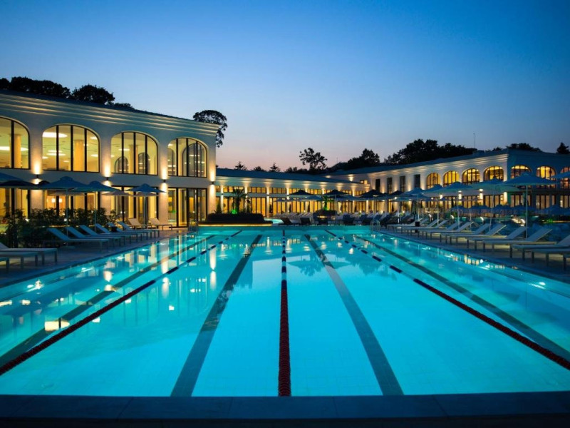 Localizare: Ensana Aquahouse Health Spa hotel este situat in statiunea Sfintii Constantin si Elena, la 50 de metri de plaja. Hotelul este nou, fiind deschis in 2022. Hotelul si facilitatile sale conexe se intind pe o suprafata de 45000 de metri patrati Facilitati hotel: Hotelul pune la dispozitia clientilor receptie si lounge, baruri, restaurant principal cu terasa, estaurante a-la-carte (The Grill si Kampai), servicii de schimb valutar, 5 piscine exterioare, piscina pentru copii cu tobogane, 6 piscine interioare, piscina semi-olimpica, centrtu SPA (contra cost), masaj (contra cost), baie turceasca (contra cost), servicii de spalatorie (contra cost), parcare. Dotari camere: Camerele sunt dotate cu aer conditionat, TV cu ecran plat, Wi-Fi, seif in camera, minibar, facilitati pentru ceai si cafea, balcon. Sunt acceptate animale de companie mici (pana la 10 kg) la cerere (doar cu confirmarea hotelului) si cu o taxa suplimentara care se plateste la hotel. Hotelul ia in considerare acceptarea animalelor de companie in sezoanele cu cerere redusa. Site web: https://ensanahotels.com/ro/hotels/aquahouse