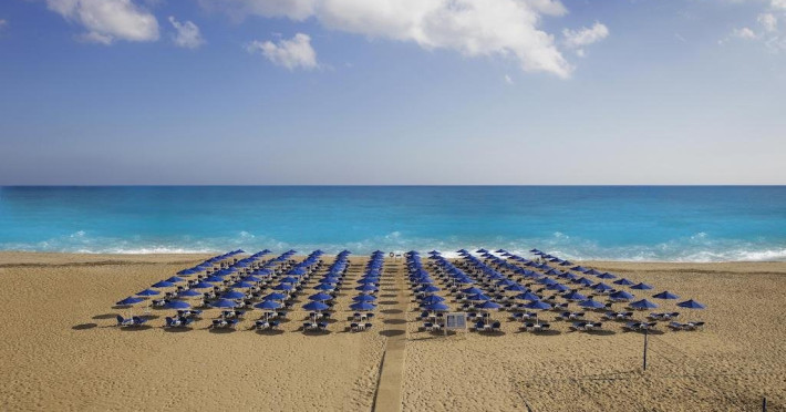 Plaja: premiata Blue Flag are sezlonguri si umbrele free, prosoape gratuite si water sports extra cost.