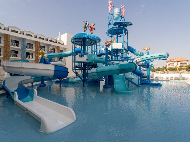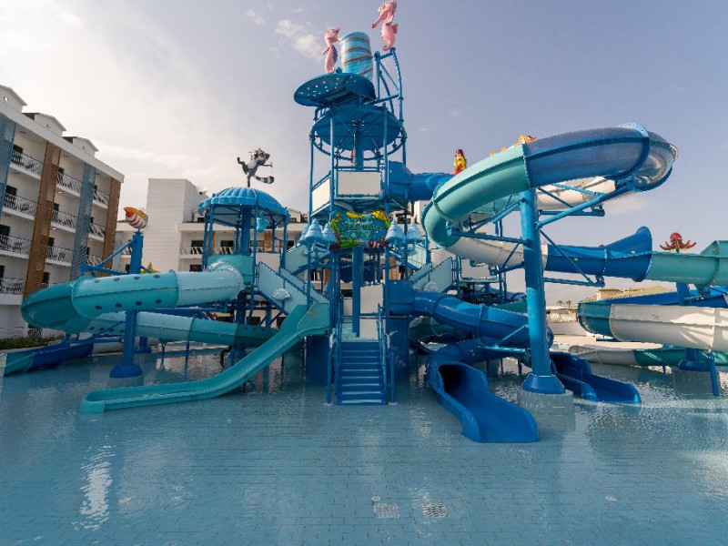 Facilitati copii: Piscina pentru copii, tobogane, loc de joaca, mini club.