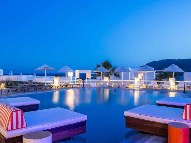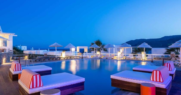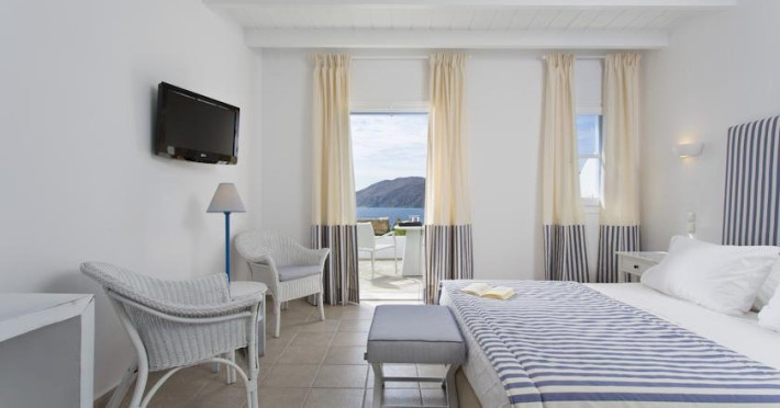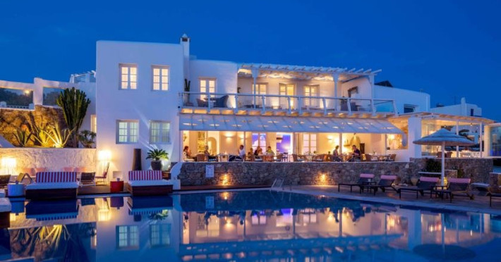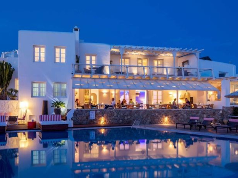 Descriere: hotel renovat in 2013-2014 localizat ideal in apropierea plajei Kalo Livadi una din cele mai frumoase si pitoresti din Mykonos