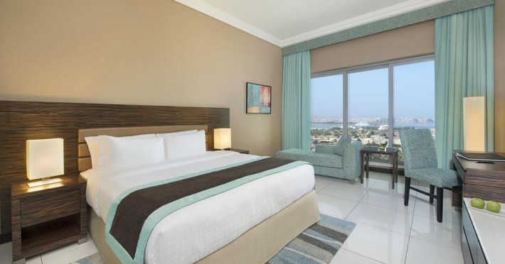 Descriere: Hotelul nou deschis in 2015 este situat in zona Al Barsha, in apropierea hotelului Media Rotana, la 5 minute de mers cu masina de Mall of Emirates. Camerele moderne si elegante sunt decorate in culori luminoase si calde si ofera filtru pentru cafea/ ceai. Localizare: in Dubai, zona Al Barsha, la 1 km distanta de orasul medieval, la 35 km de aeroportul Dubai. Statia de metrou Dubai Internet City este la 3 minute de mers de hotel. Dotari camere: baie cu uscator de par, TV satelit, aer conditionat, telefon, frigider, seif. Facilitati hotel: 3 restaurante, piano caf?? lounge, piscina in aer liber, sala fitness. In acest hotel nu se servesc bauturi alcoolice.