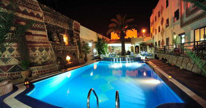 This hotel is located in the town centre, 200 metres from links to the public transport network and near to shops, restaurants and public administration buildings. Guests will find bars and nightspots just 700 m from the hotel and the beach is 800 metres away. It is 25 kms to Agadir Airport. This city hotel was fully renovated in 2004 and features Moroccan style decoration and a total of 50 rooms. This charming hotel is cosy, familiar and friendly and offers guests a real change of scene. The accommodation units are bright, comfortable and calming. The hotel features an outdoor swimming pool with a small waterfall and a childrens section as well as a sun terrace with sun loungers and parasols where guests can relax and soak up some vitamin D. There is waterfall on the upper floors and a beauty salon. A massage studio offers various treatments to rejuvenate body and soul.