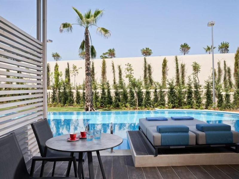 Atlantica Mare Village Ayia Napa este amplasat la 4 km de centrul statiunii Ayia Napa si la 61 km de Aeroportul Larnaca Complex, intr-o zona linistita aflata intre statiunile Ayia Napa si Protaras. Complexul a avut parte de o reconstructie completa in stilul unui sat cipriot.
