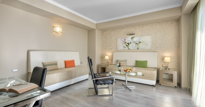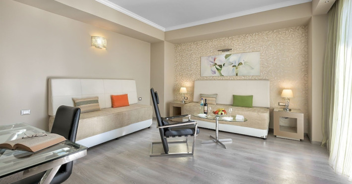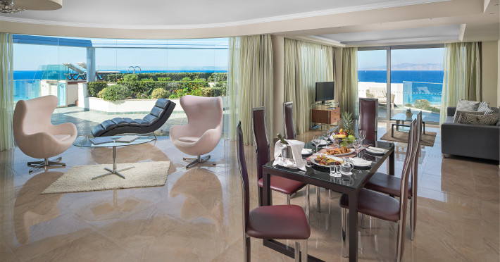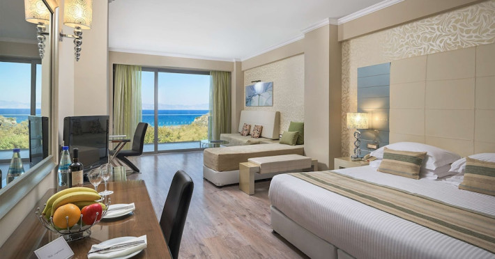 Located in Ixia, Rhodes, the Atrium Platinum Luxury Resort Hotel & Spa offers a modern escape with sea views, close to the beach and a short drive from Rhodes' UNESCO-listed Old Town. It features multiple restaurants serving Greek, Mediterranean, Asian, and Italian cuisine, along with two bars and a gelateria. Guests can enjoy three swimming pools, including a children’s pool and a heated outdoor pool, as well as access to water sports at the nearby beach. The spa offers massages, body treatments, facials, a sauna, and a heated indoor pool. The resort has 298 air-conditioned rooms with private balconies, minibars, complimentary wireless internet access, and satellite programming. Amenities include a 24-hour business center, concierge services, and a 24-hour front desk. Event facilities consist of conference space and a meeting room. Free self-parking is available. All-inclusive rates are available. The Atrium Platinum Luxury Resort is a hotel.