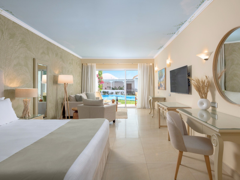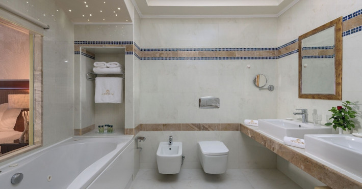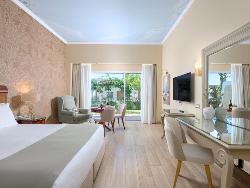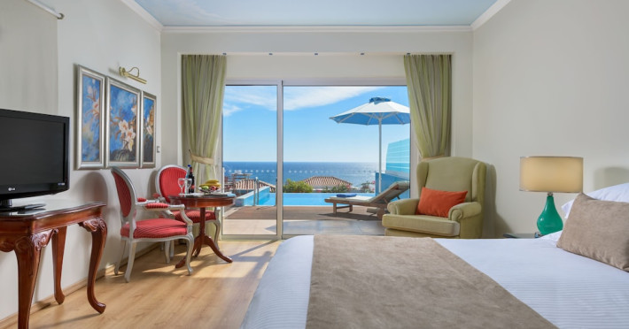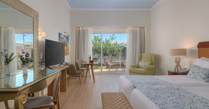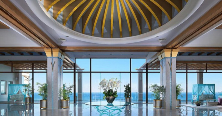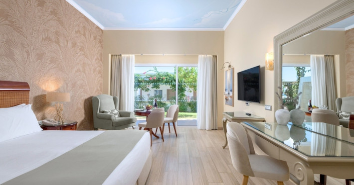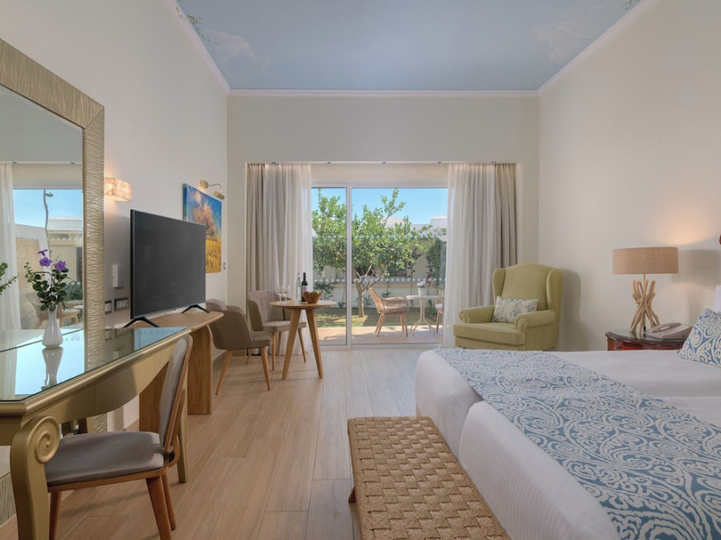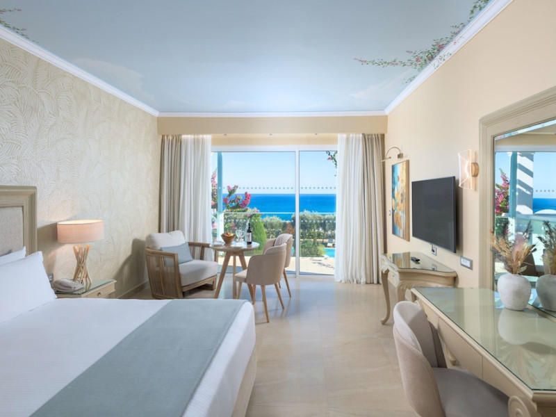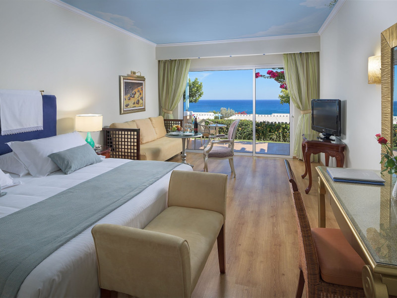 Located on the southeast coast of Rhodes, the Atrium Prestige Thalasso Spa Resort & Villas offers direct access to a sand and pebble beach in Lachaniá. Guests can enjoy a spa with massages, body treatments, and facials, as well as 4 outdoor swimming pools, an outdoor tennis court, and a sauna. The hotel features 5 restaurants serving international cuisine, 3 bars/lounges, and 24-hour room service. Complimentary wireless internet access, concierge services, a hair salon, and a complimentary area shuttle are available. The hotel also offers complimentary newspapers in the lobby, dry cleaning/laundry services, and a 24-hour front desk. Onsite amenities include a conference center, a meeting room, and free self-parking. The 251 air-conditioned rooms feature flat-screen televisions, complimentary wireless internet access, satellite programming, private bathrooms with jetted bathtubs and complimentary toiletries, phones, safes, and desks. The Atrium Prestige Thalasso Spa Resort and Villas is a Tourist hotel. The nightlife/restaurants are easily accessible by taxi or bus from the hotel.