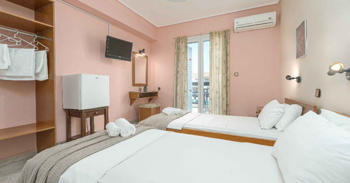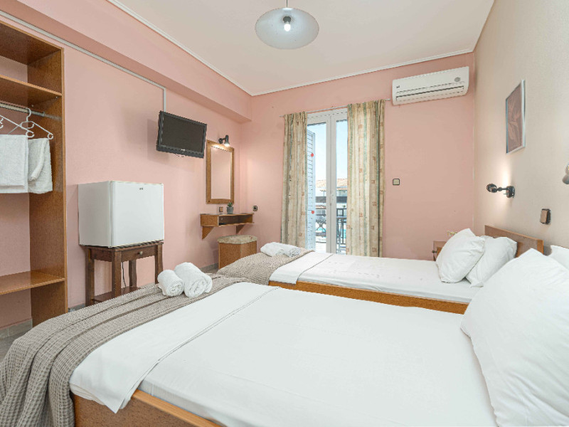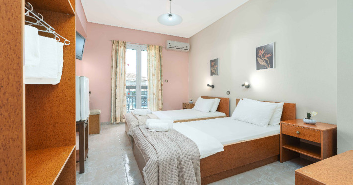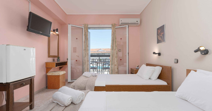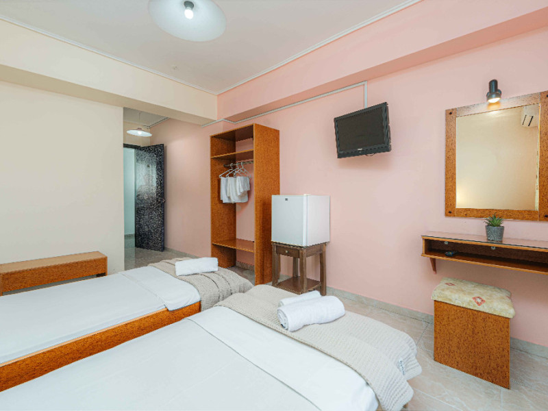 Localizare: Hotelul Aura este situat intr-un loc linistit la marginea orasului Laganas, aproximativla 2 km de plaja si la 4 km de aeroportul international Zakynthos. Descriere: Aceasta este o destinatie relaxanta, doar pentru adulti, care ofera o cazare simpla, dar confortabila, precum si o piscina pentru relaxare pe tot parcursul zilei. Cazare: Camera dubla Economy aprox. 18 m2 (max 2 persoane: 2 paturi de o persoana). Camera tripla Economy aprox. 18 m2 (max 3 persoane: 3 paturi de o persoana). Camera dubla standard aprox. 17 m2 (max 2 persoane: 1 pat dublu). Camera tripla standard - aprox. 18 m2 (max 3 persoane: 1 pat dublu si 1 pat de o persoana). Camera cvadrupla aprox. 38 m2; dormitor in plan deschis (max 4 persoane: 2 paturi de o persoana si 1 pat supraetajat). Toate unitatile de cazare ofera urmatoarele: aer conditionat/incalzire individuala (contra cost), Wi-Fi (gratuit), TV cu ecran plat, mini-frigider, fier si masa de calcat (la cerere), dus/WC, uscator de par, balcon/terasa, serviciu de menajera (de 2 ori pe saptamana), schimbare prosoape (de 2 ori pe saptamana), schimbare a lenjeriei (de 2 ori pe saptamana), spalatorie si calcatorie (contra cost). Facilitati: Receptie 12 ore (09:00-21:00), hol, bucatarie comuna, centrala seif (gratuit), camera de bagaje, Wi-Fi in zonele publice (gratuit), piscina in aer liber (09:00-21:00), sezlonguri si umbrele de soare la piscina (gratuit), medic de garda (contra cost). Nota informativa: Pentru anumite facilitati din hotel sau din camera, hotelierul poate solicita taxe suplimentare. In momentul sosirii la hotel solicitati receptionerului sa va informeze cu exactitate asupra lor. Taxa locala obligatorie se achita la receptie.