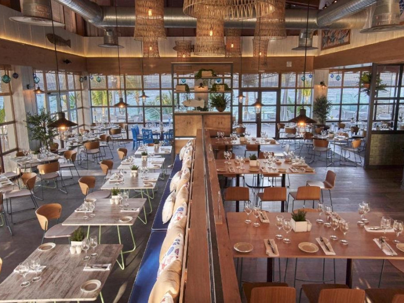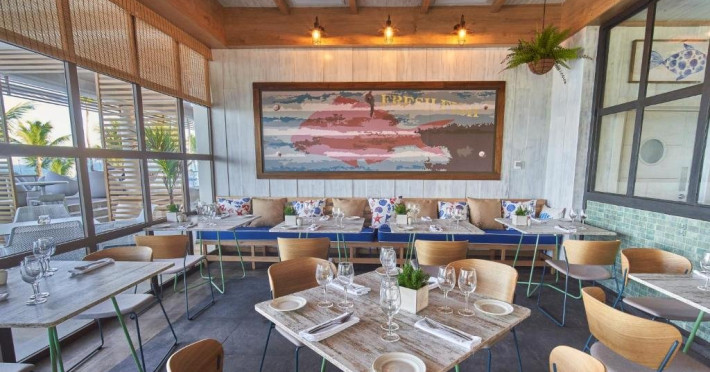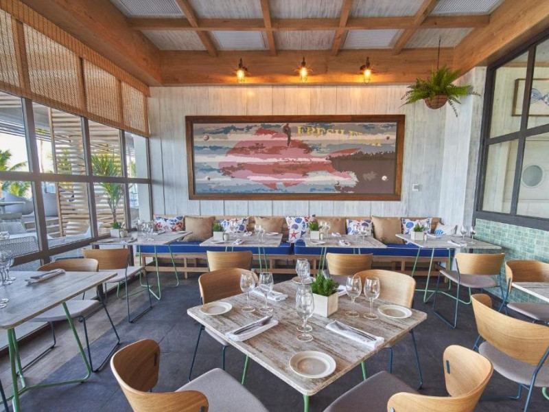 Complexul Bahia Principe Grand Aquamarine cuprinde trei restaurante in stil bufet (bucatarie internationala), treisprezece restaurante a la carte (bucatarie asiatica, italiana, mexicana, indiana, greceasca, gourmet, braziliana, japoneza, peruviana, preparate la gratar, peste si fructe de mare) si trei baruri, unde oaspetii se pot relaxa intr-o atmosfera autentica cu un cocktail tropical.