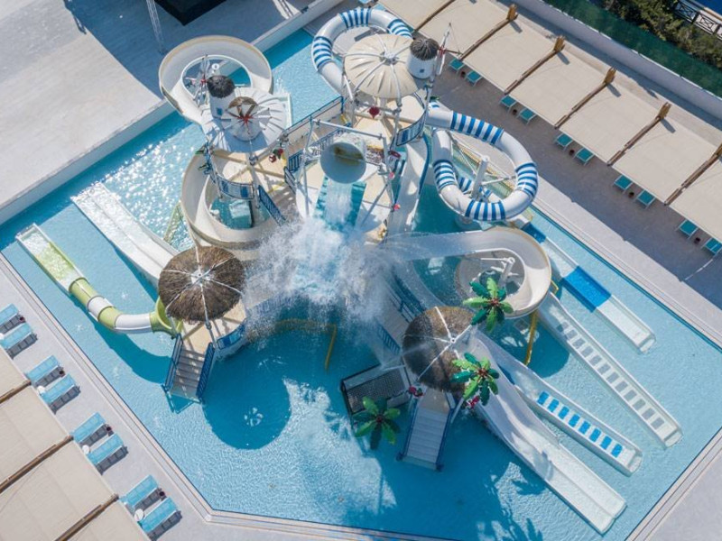 Facilitati hotel: Hotelul ofera oaspetilor sai urmatoarele facilitati: restaurant principal, 2 restaurante A la Carte, 3 baruri, patiserie, disco, piscina exterioara, aqua park cu piscina pentru copii, animatie, musica live, tenis de camp, teren de mini fotbal, volei pe plaja, mini club (pentru copii intre 04 - 12 ani), sauna, hamman, sali de conferinta.