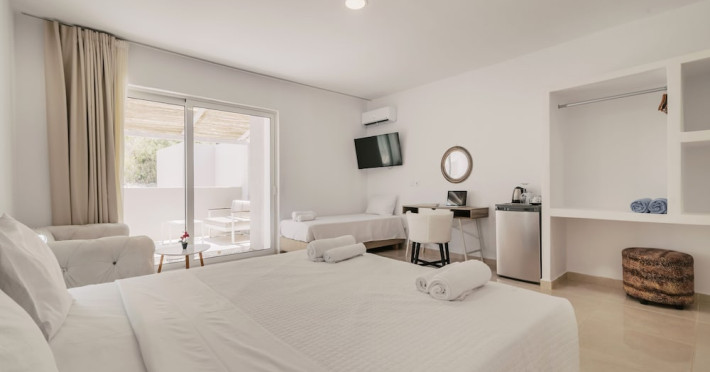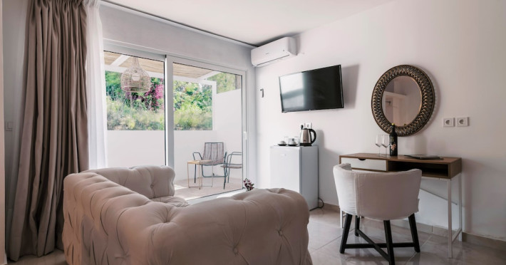 Cazare elegantă: Bamboo Suites Hotel - Adults Only din Ialyssos oferă terasă la soare, grădină, restaurant, bar, piscină sezonieră în aer liber și WiFi gratuit. Oaspeții se bucură de o ambianță modernă și romantică, cu preparate din bucătăria mediteraneană.