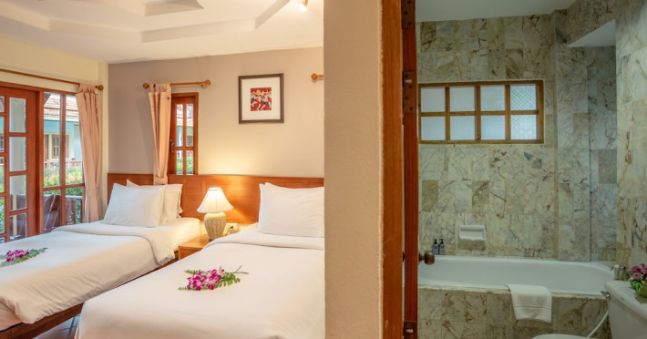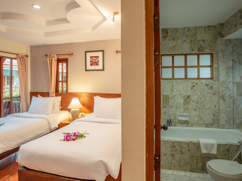 Located a short distance from Bang Tao Beach, this resort offers 28 Thai-style villas, each with a private balcony. Guests can enjoy a garden setting and access to an outdoor pool, children's pool, and hot tub. The resort features a restaurant, bar, and offers room service. Each air-conditioned room includes complimentary wireless internet access, a flat-screen TV with cable programming, a private bathroom with a shower/tub combination, a hairdryer, a minibar, tea and coffee making facilities, a safe, and individually adjustable air conditioning. Additional amenities include a 24-hour front desk, laundry services, and on-site parking (additional fees apply). Airport shuttle service is available for an additional charge. The Bangtao Village Resort is a Tourist hotel. The nightlife/restaurants are located in the hotel.