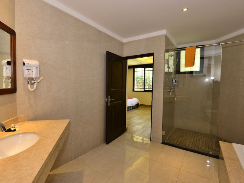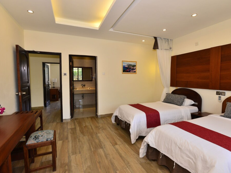 Baobab Holiday Resort has a chinese restaurant, a continental restaurant, bar, swimming pool, meeting/conference facilities and internet service. The guestrooms are equipped with air conditioning, bathroom, satelliteTV, telephone, mini-bar, safe deposit box and a balcony or a terrace. On special request we can provide English speaking guide (visiting hotel 3 times a week) paid on spot. Address: P.O. Box 99527, 80107 Mombasa, Kenya