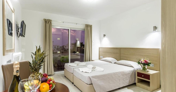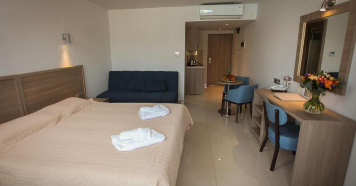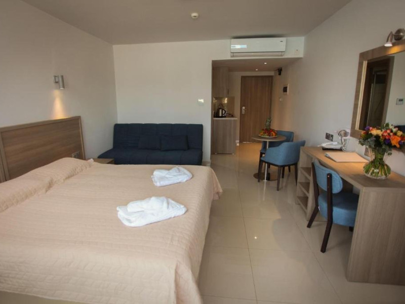 Descriere: Hotelul Bellini este renovat complet si se afla in inima statiunii Ayia Napa. Acesta ofera studiouri si suite amenajate in jurul unei piscine private, un bar si un restaurant. Plajele Pernera si Sandy Bay sunt la aproximativ 500 de metri de proprietate. Plaja Nissi este la 2 km, iar Waterworld Waterpark este la 3 km. Locatie : Hotelul se afla la 46 de km fata de aeroportul International Larnaca. Dotari camera: Toate camerele sunt mobilate si decorate cu un design unic. Acestea sunt dotate cu aer conditionat, TV prin satelit, uscator de par, seif, baie cu dus si acces gratuit la internet WiFi. Studiourile superioare si suitele au un dormitor si chicineta. Facilitati hotel : Hotelul este dotat cu o pisicna pentru adulti, una pentru copii, sezlonguri si umbrele (gratuite la piscina), snack bar.