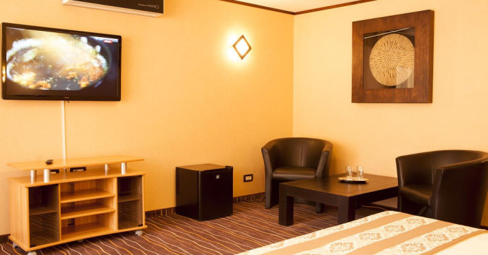 Hotelul Belvedere Sovata va pune la dispozitie cele mai frumoase camere din statiune, cu o panorama de vis! Camerele pentru o persoana au un pat matrimonial generos, fiind extrem de primitoare. Sunt dotate cu televizoare LCD, climatizare de ultima generatie, minibar si au acces la televiziune prin cablu si internet nelimitat (WiFi si cablu). Baile dispun de uscator de par si halate de baie. Unitatea noastra hoteliera dispune de 60 de locuri de cazare, insumate in 2 apartamente, 5 camere single si 12 camere double. Camerele double sunt dotate cu doua paturi matrimoniale de dimensiuni mari. Incaperile sunt spatioase si au televizoare LCD, climatizare de ultima generatie, minibar, acces la televiziune prin cablu si internet nelimitat (WiFi si cablu). Baile dispun de uscator de par si halate de baie. Belvedere este cel mai frumos hotel din Sovata, imprejmuit de padure, aflandu-se la doar 15 minute de Lacul Ursu, daca urmati aleea prin padure si vizitati Lacul Mierlei. Hotelul nostru va ofera trei apartamente, cu cate doua sau trei paturi matrimoniale. Va punem la dispozitie televizoare LCD, climatizare de ultima generatie, minibar, acces la televiziune prin cablu si internet nelimitat (WiFi si cablu). Baile dispun de uscator de par si halate de baie. Belvedere imbina gastronomia cu linistea naturii, muzica cu recreerea, pentru fiecare oaspete care ne trece pragul. Hotelul Belvedere Sovata dispune de un restaurant ale carui preparate traditionale savuroase va vor incanta papilele gustative. Localul are o capacitate de 40 de locuri in interior si 35 pe terasa, unde aveti o panorama senzationala, care va va face sa uitati de orice fel de grija. Hotelul Belvedere Sovata dispune de un restaurant cu o capacitate de 70 de locuri, dar si de o terasa in aer liber, dotata cu grill si cuptor. Terasa in aer liber este deschisa doar pe timpul verii. Amenajat in stil rustic, spatiul este perfect pentru organizarea unor evenimente de familie ( aniversari, cine festive), avand o capacitate de 120 de locuri. Terasa este dotat cu grill si cuptor. Paseste intr-un sanctuar al linistii si armoniei! Hotelul Belvedere Sovata dispune de un centru SPA, in care puteti imbratisa experiente multisenzoriale ce va vor oferi confortul psihic si fizic, care va va ajuta sa va regasiti echilibrul perfect intre trup, minte si suflet. Centrul nostru SPA va pune la dispozitie o piscina cu apa dulce, bazin cu apa sarata, saune (turceasca si finlandeza) si un salon de masaj. Serviciile noastre vor satisface nevoile si dorintele fiecarui client in parte. In cadrul SPA Belvedere, va asteapta si un bar cu un plus de energie pentru o zi de rasfat. Va asteptam pentru un sejur SPA & wellness complet! Piscina reprezinta centrul universului dumneavoastra intr-o zi torida de vara. Departe de caldura urbana, de stresul zilnic, va asteptam pe plaja Belvedere cu sezlonguri si umbrele, piscina exterioara cu apa dulce, bazin pentru copii, loc de joaca si un pachet de servicii extraordinare.